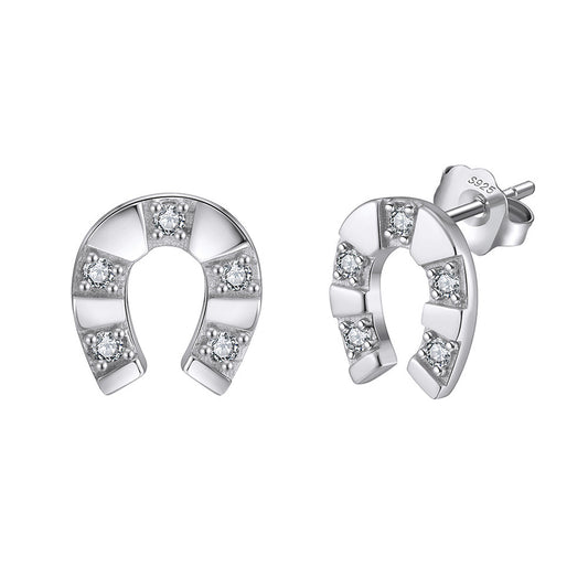 Lucky Horseshoe Stud Earrings – 925 Sterling Silver, Gold/Platinum Plated, Handmade by Kemstone A4-APE145