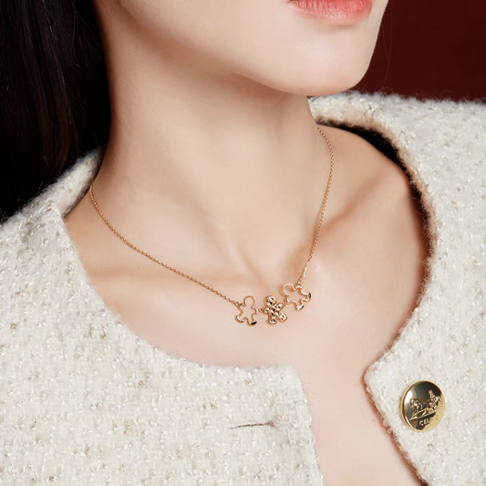 Collar de conejo BEFINE, diseño original artesanal de Kemstone, cadena de plata de ley 925 bañada en oro con piedras preciosas verdes y margarita esmaltada. Colección curativa para mujer. Regalo único.