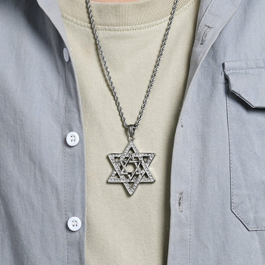 Kemstone Stainless Steel Six-Point Star Pendant Necklace – Rhinestone Hip Hop Style K-PT685