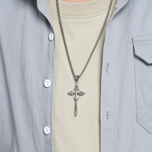 Kemstone Stainless Steel Gothic Cross Pendant Necklace for Men K-PT692