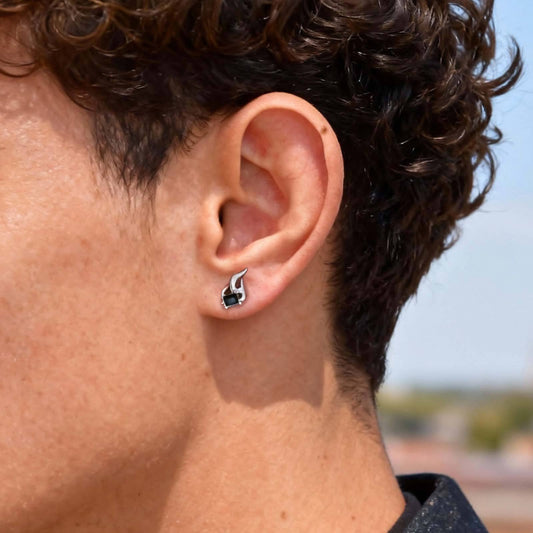 Kemstone Stainless Steel Flame Stud Earring with Black Cubic Zirconia for Men & Women ES-787S