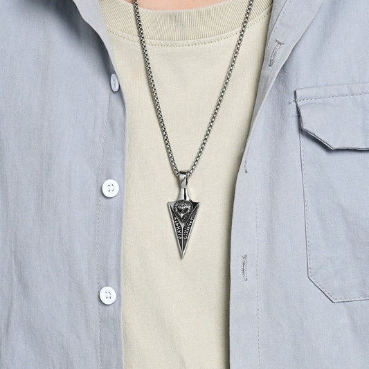 Kemstone Stainless Steel Viking Rune Raven Spearhead Pendant Necklace K-PT693