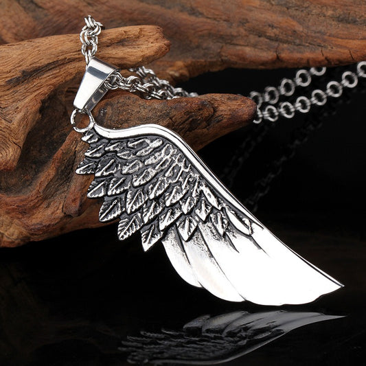 Kemstone Angel Wing Feather Titanium Steel Pendant Necklace for Men – Sculpted Silver KP39920