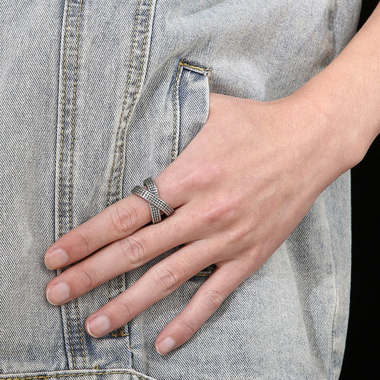 Kemstone Crossed Infinity Grid Titanium Steel Ring for Men – Vintage Oxidized Wide KR104179-BDJX