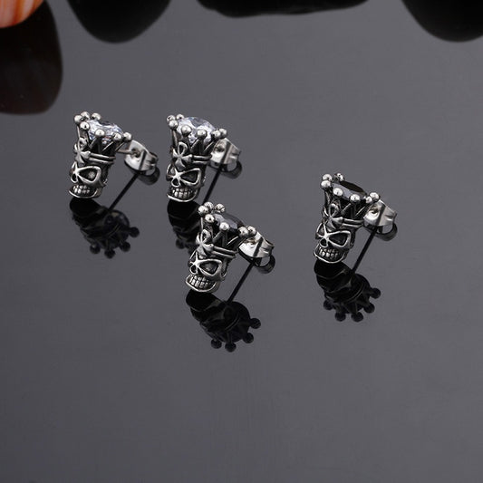 Kemstone Crowned Skull Cubic Zirconia Stud Earrings for Men – Titanium Steel Vintage Silver KE71702