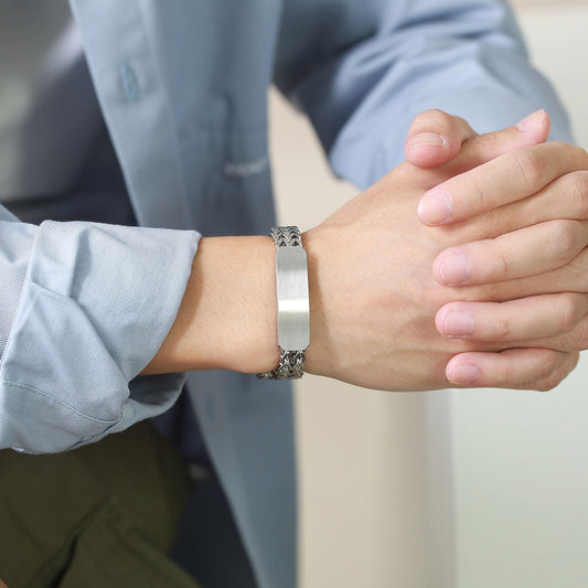 Kemstone Stainless Steel Double Layer ID Chain Bracelet for Men – Brushed Plate Heavy Style BR-1310