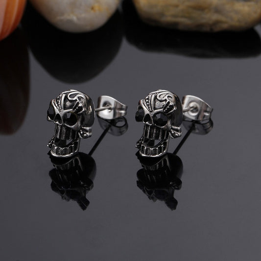 Kemstone Titanium Steel Skull Stud Earrings with Cubic Zirconia Eyes for Men KE71194
