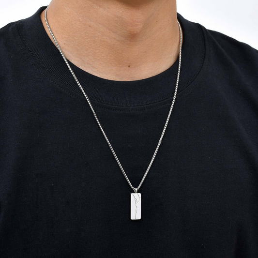 Kemstone Stainless Steel Crack Pattern Bar Pendant Necklace for Men NC-2319