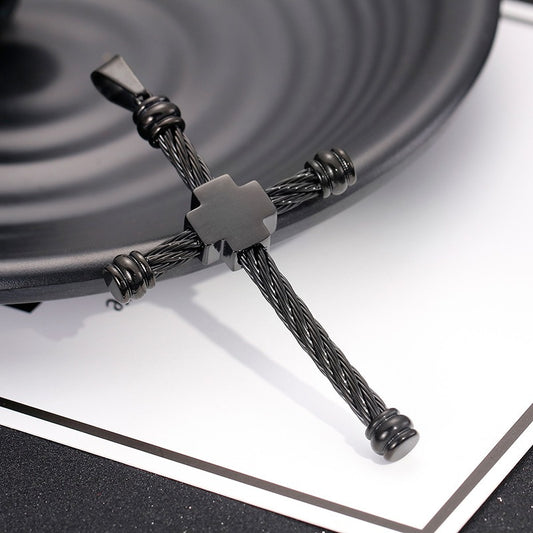 Kemstone Men’s Titanium Steel Cross Pendant Necklace – Rope Cross Design KP80529-K