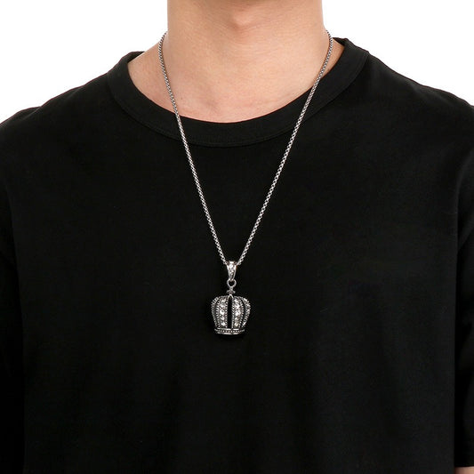 Kemstone Men’s Titanium Steel Crown Pendant Necklace – Vintage Cubic Zirconia KP57167-BD