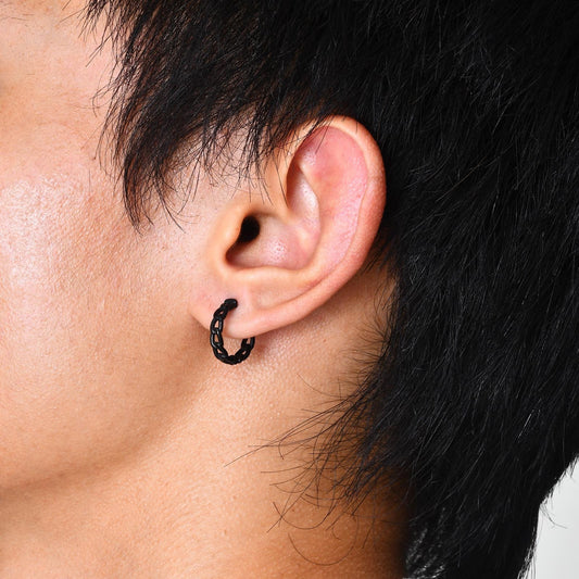 Kemstone Men’s Stainless Steel Chain Hoop Earring – Silver Black EH-302
