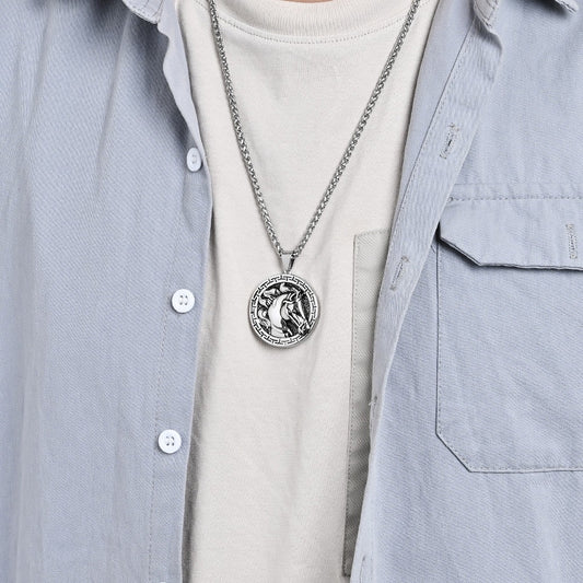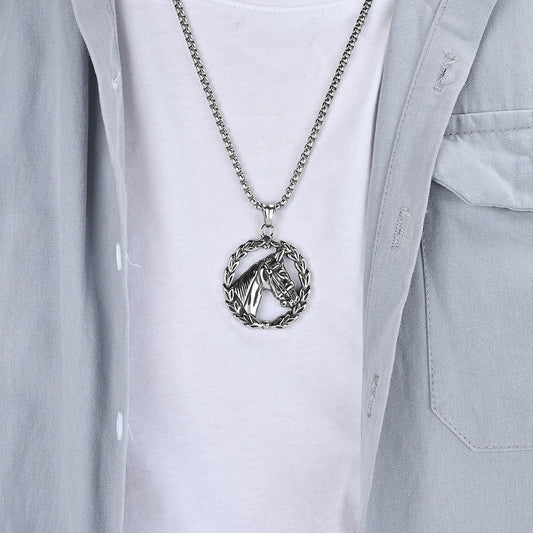 Kemstone Stainless Steel Horse Head Wreath Pendant Necklace for Men - Vintage Style K-PT448