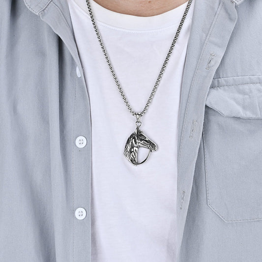 Kemstone Stainless Steel Racing Horse Head Pendant Necklace for Men K-PT440
