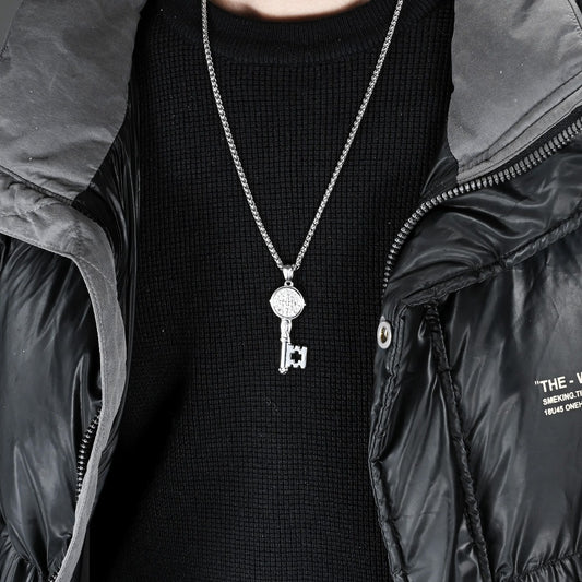 Kemstone Stainless Steel St. Benedict Key Pendant Necklace for Men K-PT537