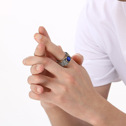 Kemstone Titanium Steel Cat Eye Ring for Men – Blue Stone Hip Hop Style KR114130-GC