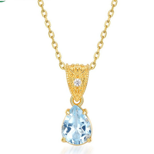 Collar con colgante de topacio azul cielo clásico en forma de lágrima, diseño original, hecho a mano por Kemstone, para mujer. Joyería de plata de ley 925 bañada en oro, 45,7 cm.