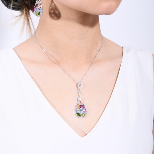 Collar con colgante de lágrima de topacio azul natural y piedras preciosas multicolores, diseño original artesanal de Kemstone | Plata de ley S925 | Cadena de 45 cm