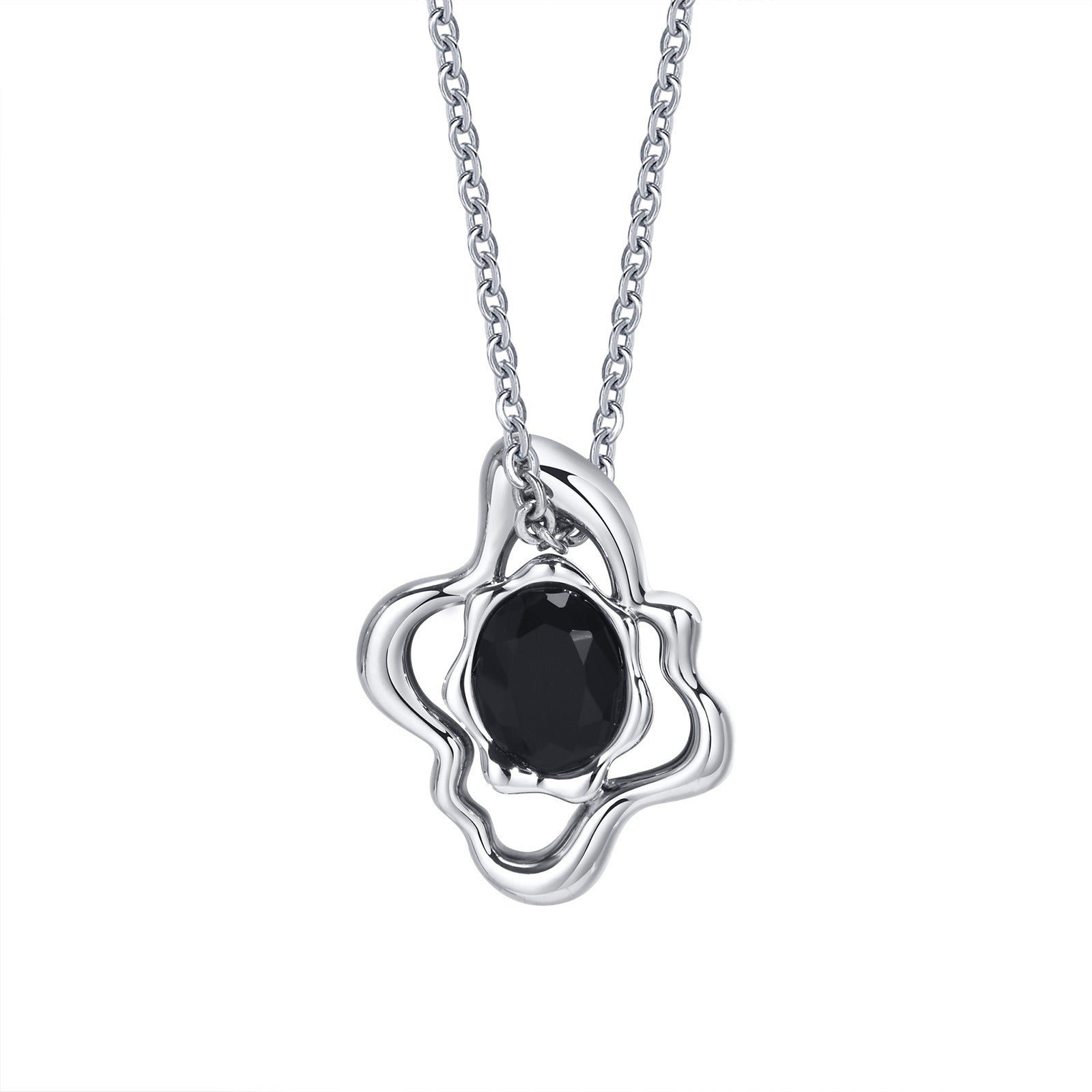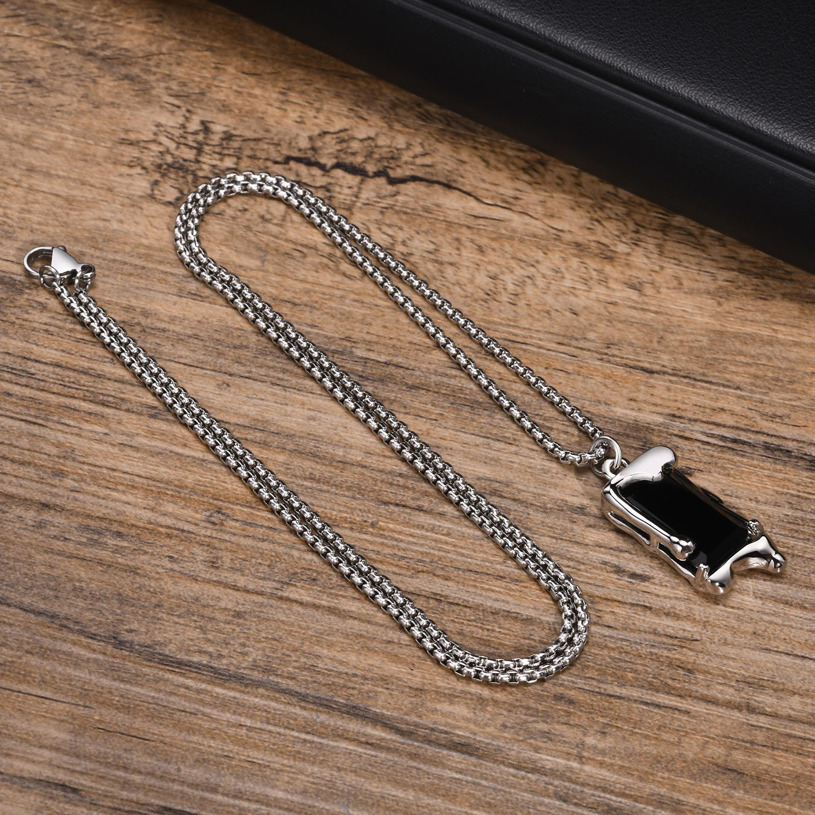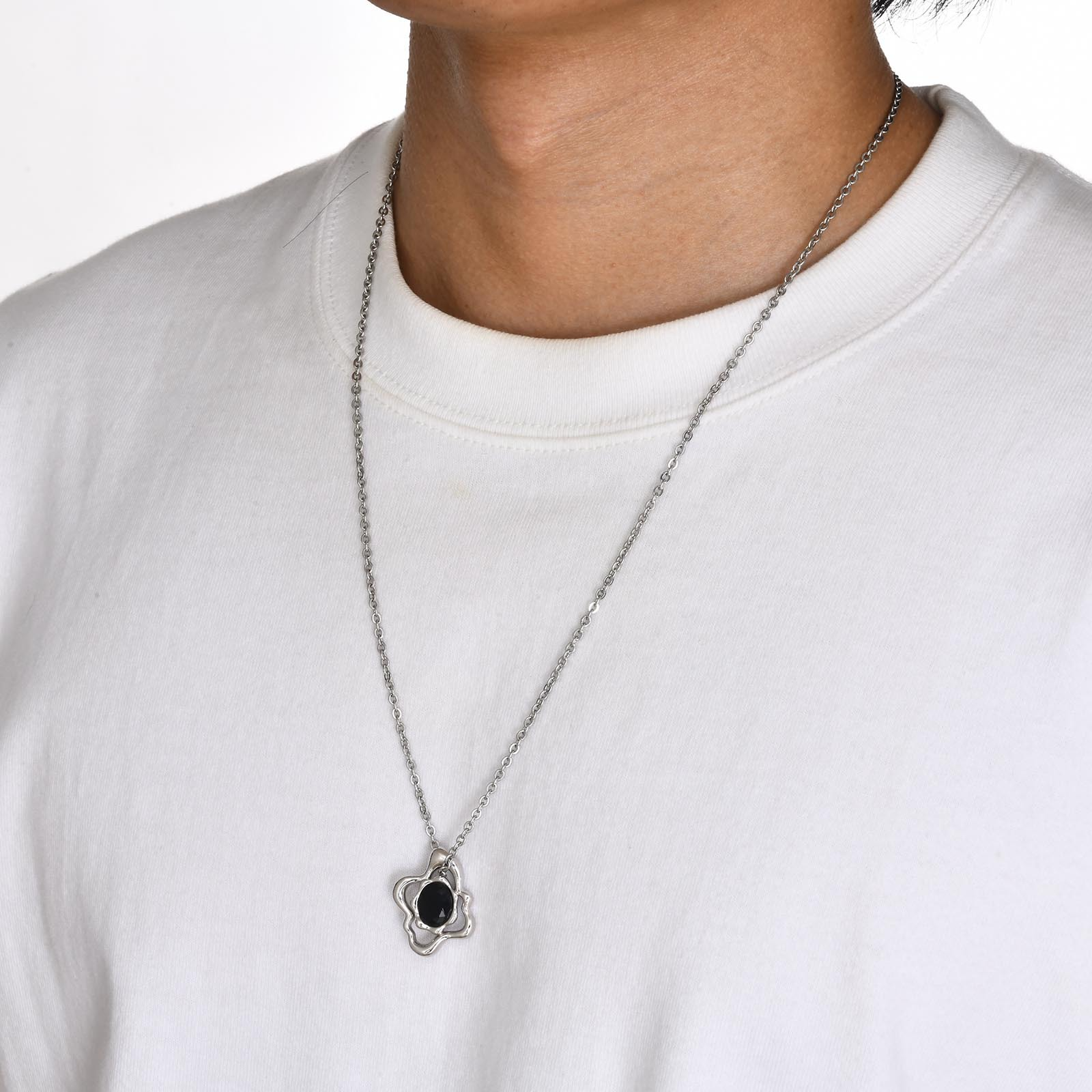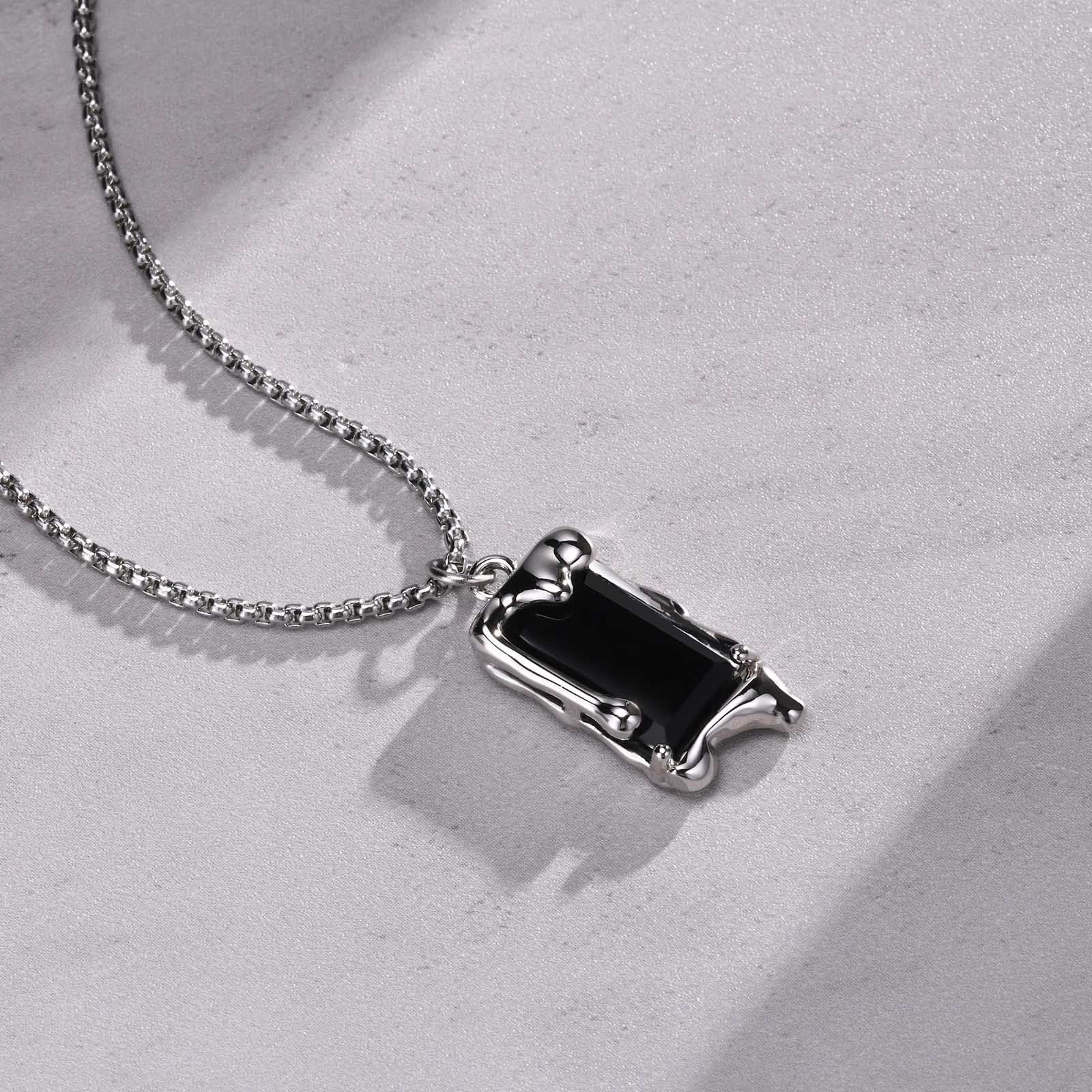 Style your look with this men’s black enamel pendant necklace. A silver-tone geometric design adds depth, contrast, and confident streetwear-inspired expression.