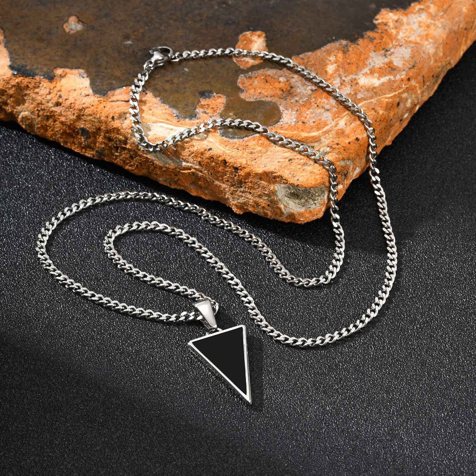 Carry focus and strength with this men’s black onyx triangle necklace. A sleek stainless steel pendant symbolizing balance, clarity, and confidence.
