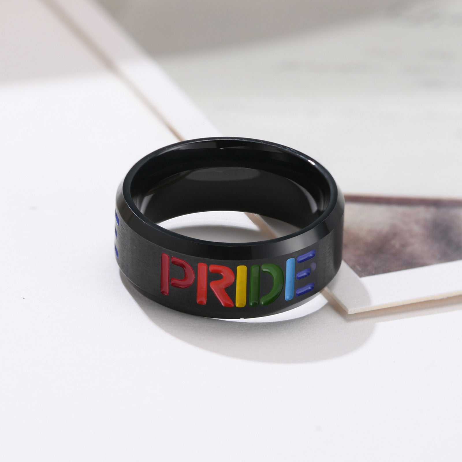 Kemstone Rainbow Enamel Band Ring – Black Stainless Steel for Men PR-038