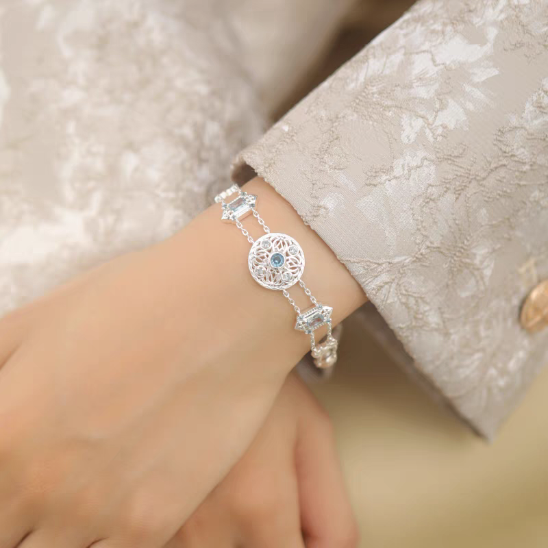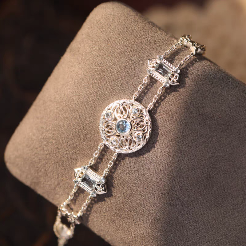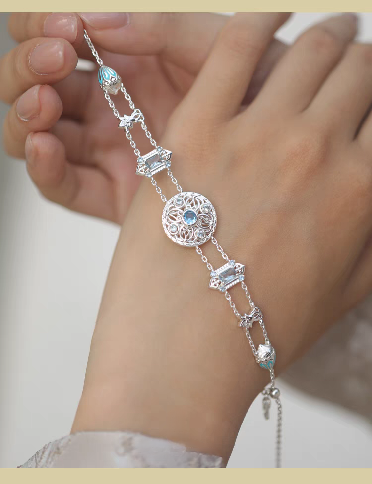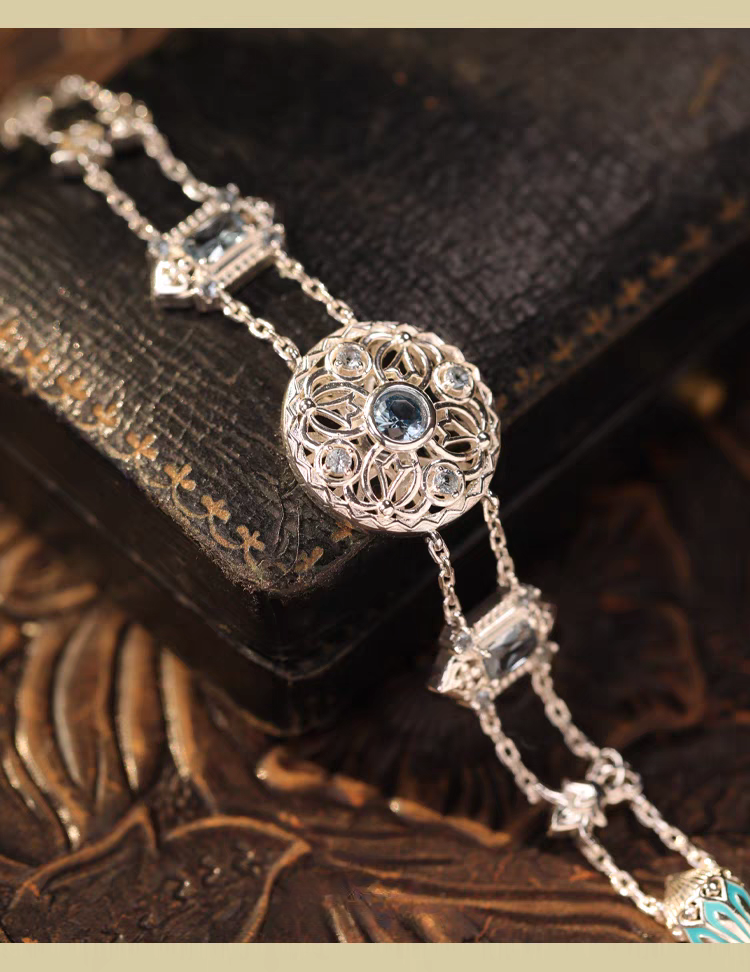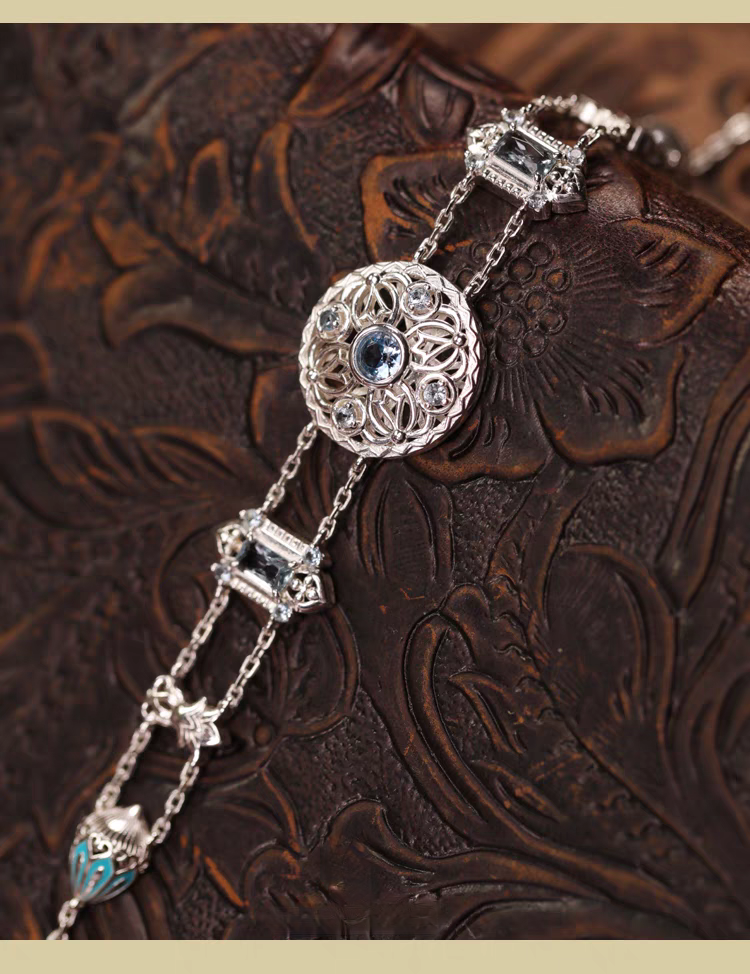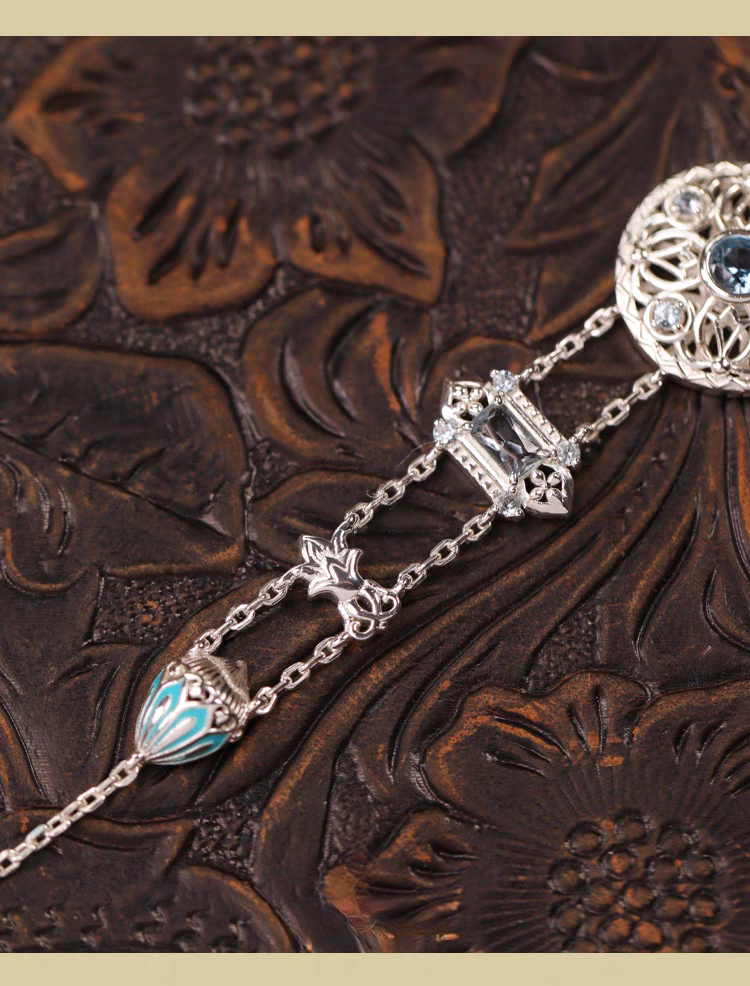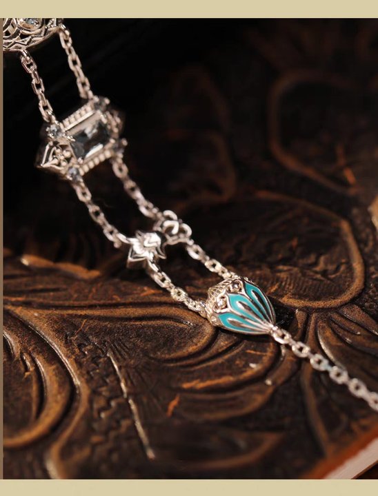 - Materiales de alta calidad : hecho de plata de ley 925, adornado con piedras de espinela azul profundo y azul claro, complementado con detalles de esmalte.