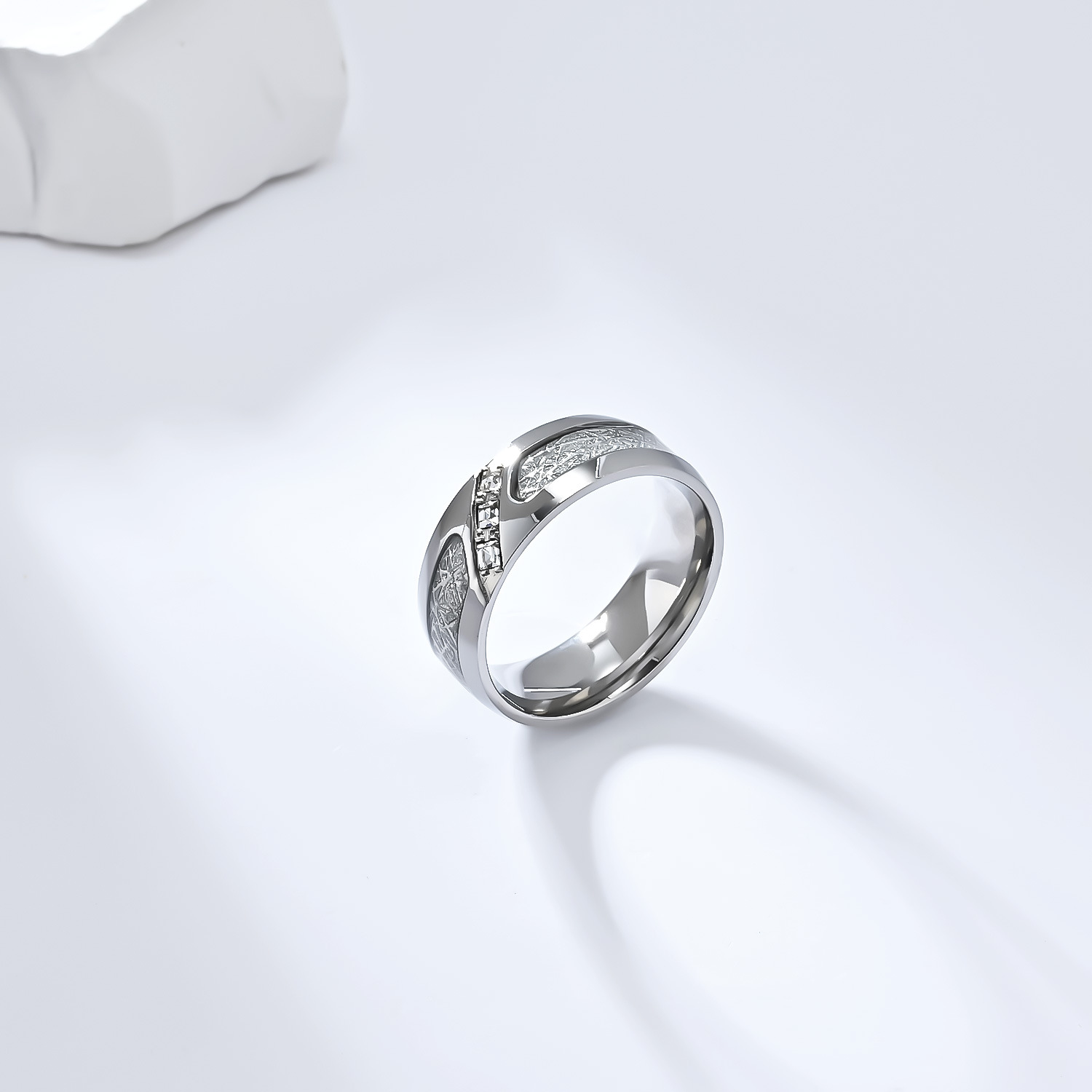 Wear cubic zirconia stainless steel ring and feel the 8mm profile centered on the finger. Frost texture and balanced weight create calm,steady presence for men.