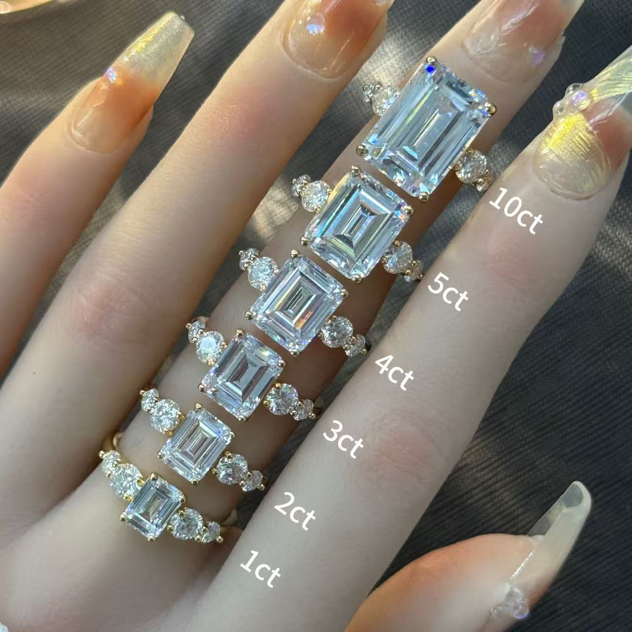 Experience timeless elegance with Kemstone’s Emerald Cut Moissanite Five-Stone Ring—crafted in S925 gold-plated silver and available in 1–10ct. Featuring D–E color and VVS clarity, this radiant piece blends luxury brilliance with refined modern design.