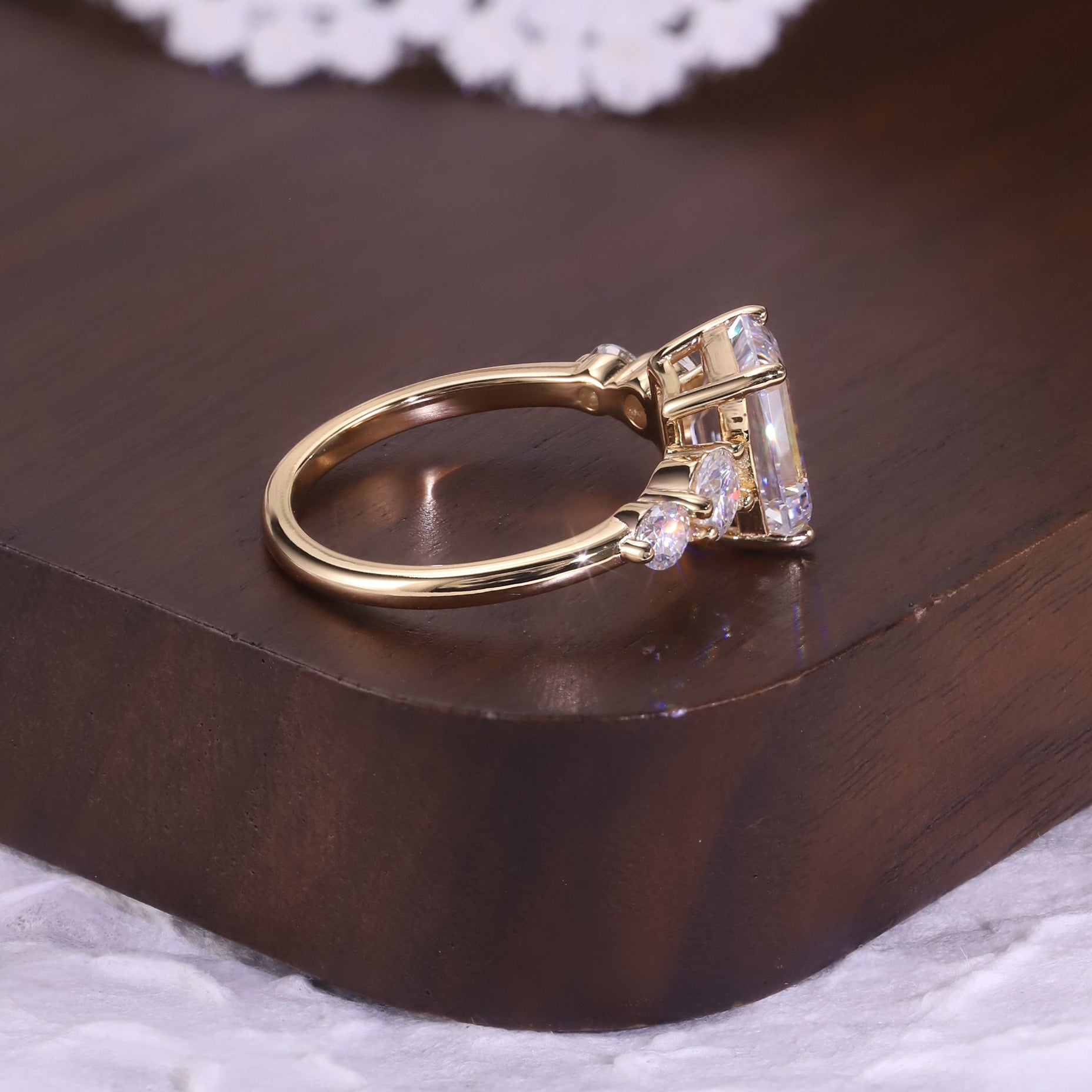 Kemstone Emerald Cut Moissanite Five-Stone Ring for Women, 1–10ct D–E VVS, S925 Gold-Plated Engagement & Wedding Jewelry SU544R