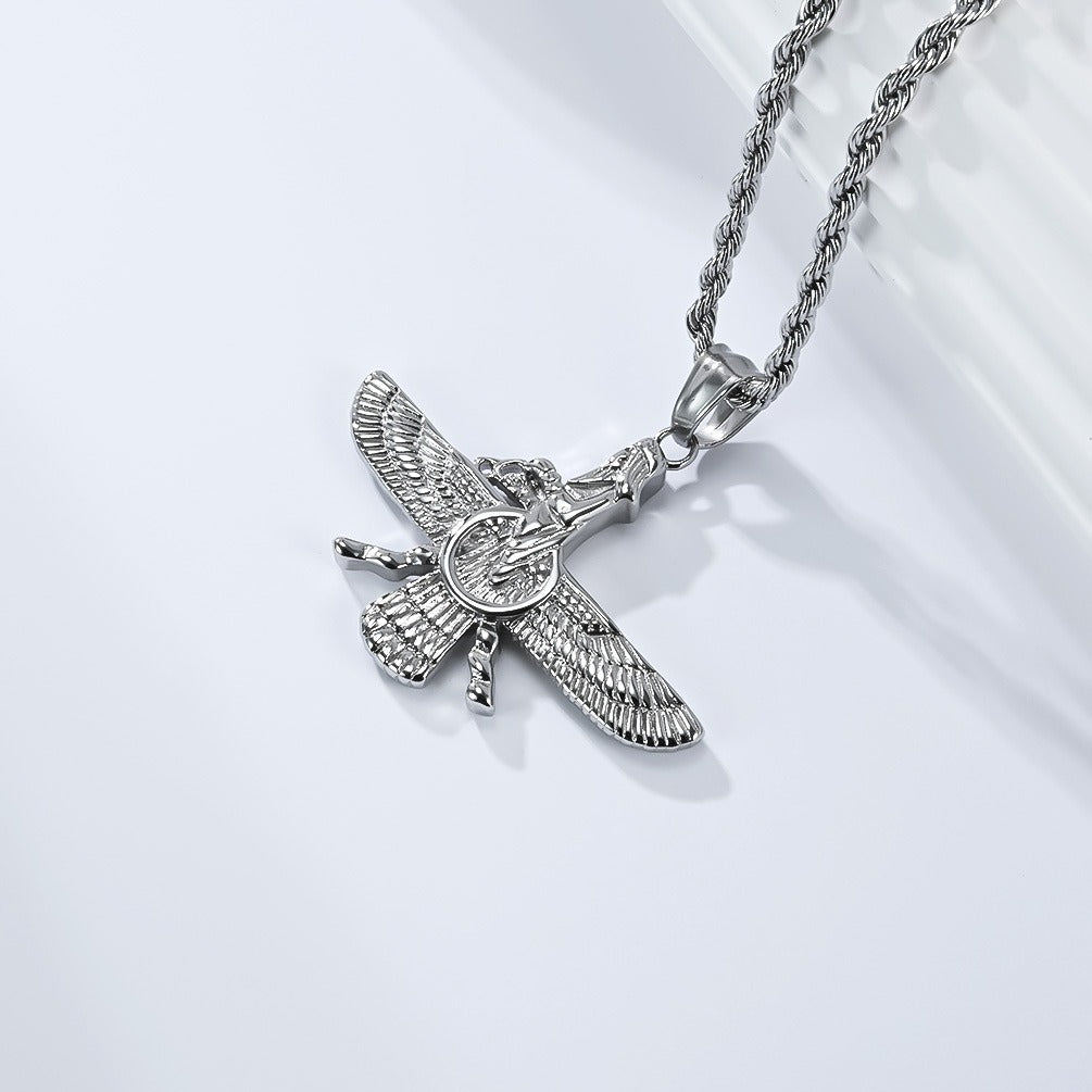 Kemstone Stainless Steel Faravahar Pendant Necklace – Persian Symbol for Men K-PT678