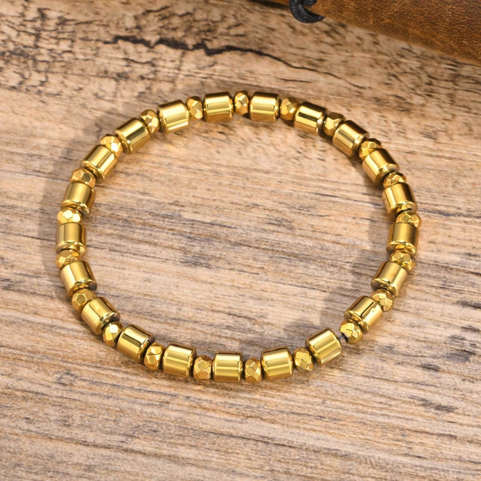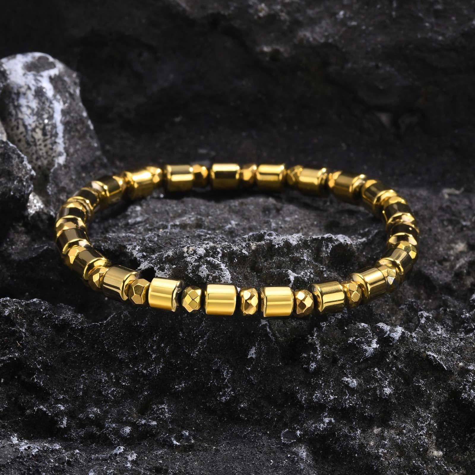 Style your wrist with this gold-plated hematite beaded bracelet for men. Clean metallic beads bring balance, confidence, and a refined daily presence.