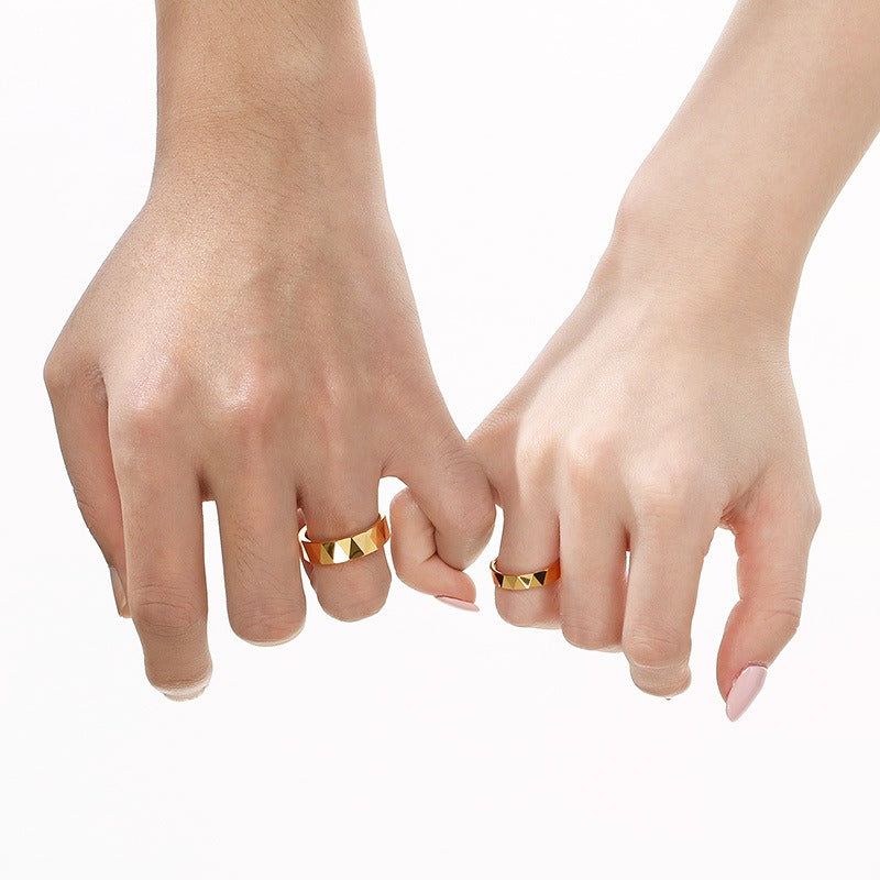 Brilliant geometric cuts catch the light from every angle, symbolizing devotion, strength, and the spark of lasting love.