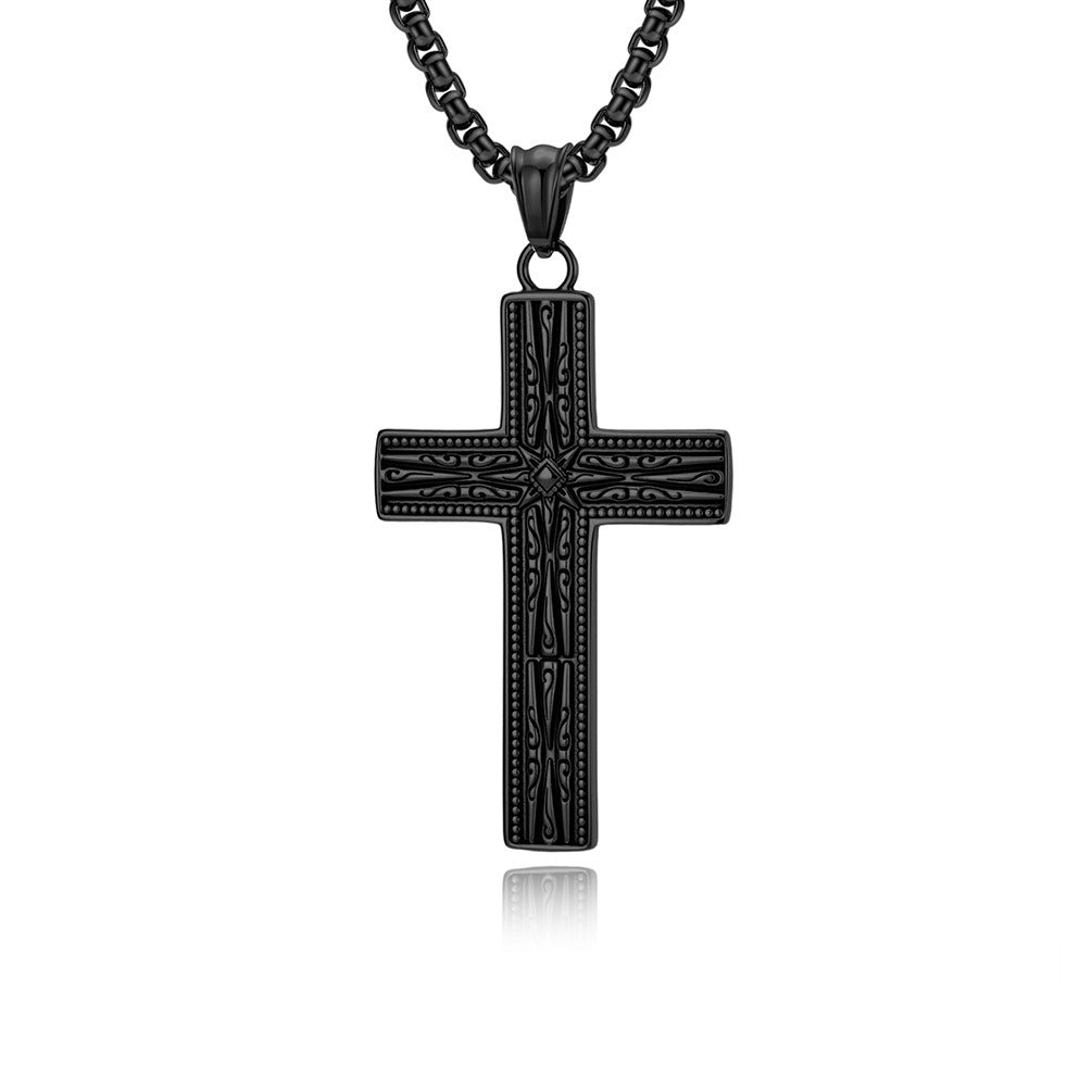 Kemstone Gothic Engraved Stainless Steel Cross Pendant Necklace for Men K-PT705