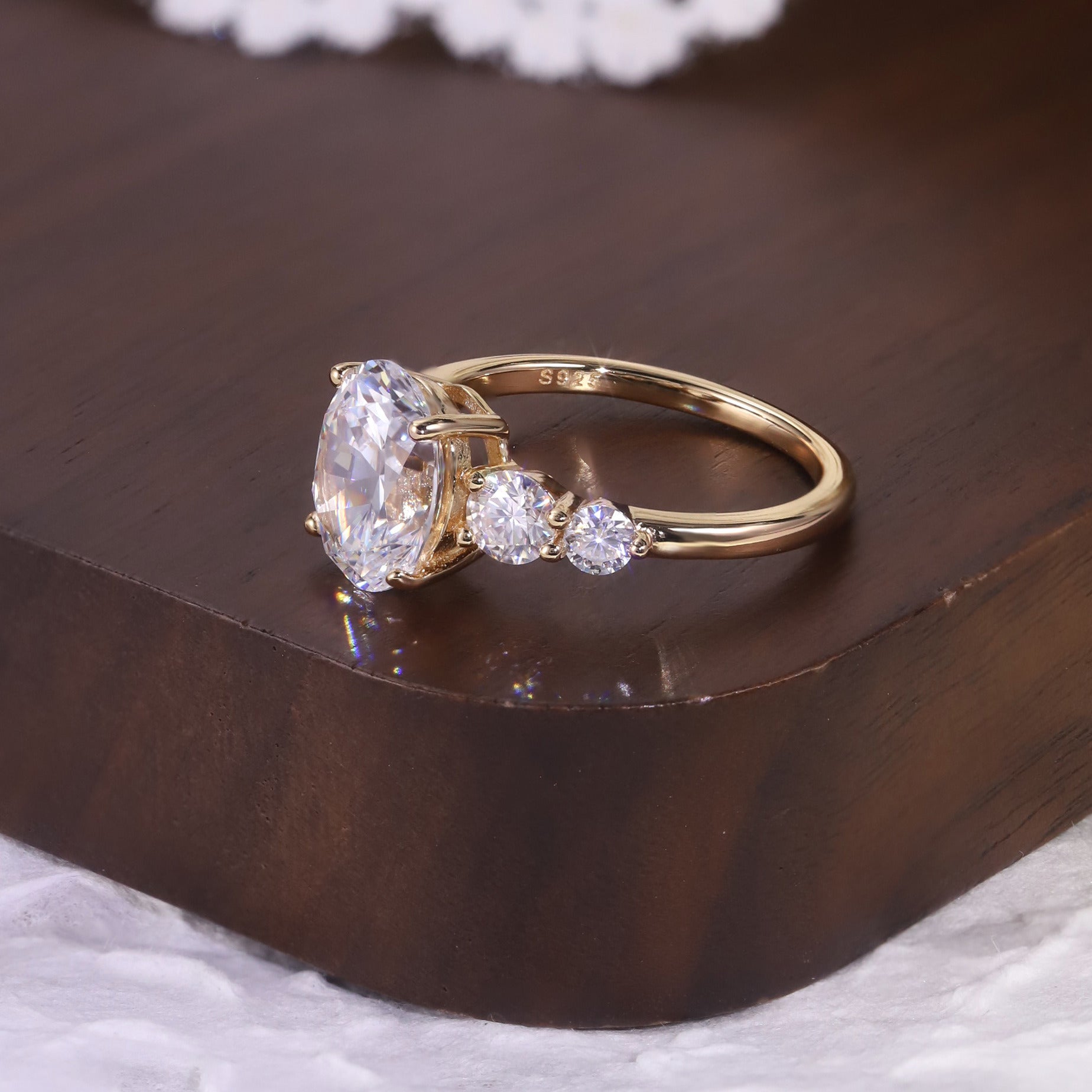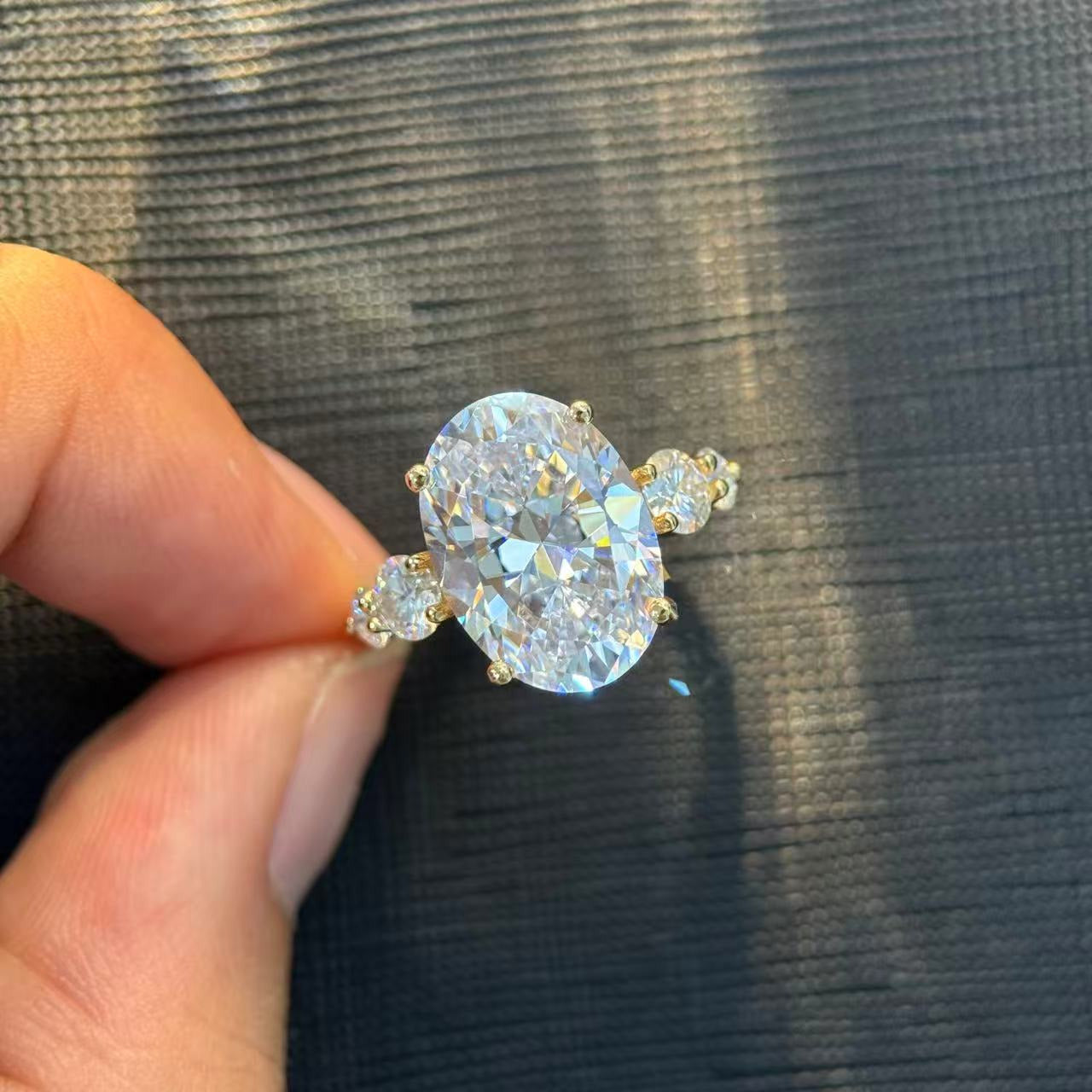 Celebrate brilliance with the Kemstone 1–8ct Oval-Cut Moissanite Five-Stone Ring, featuring a dazzling oval center stone supported by four side stones, creating a refined and romantic sparkle. Crafted in S925 sterling silver with thick gold plating, each stone features D–E color and VVS clarity, delivering exceptional shine and premium diamond-like fire.