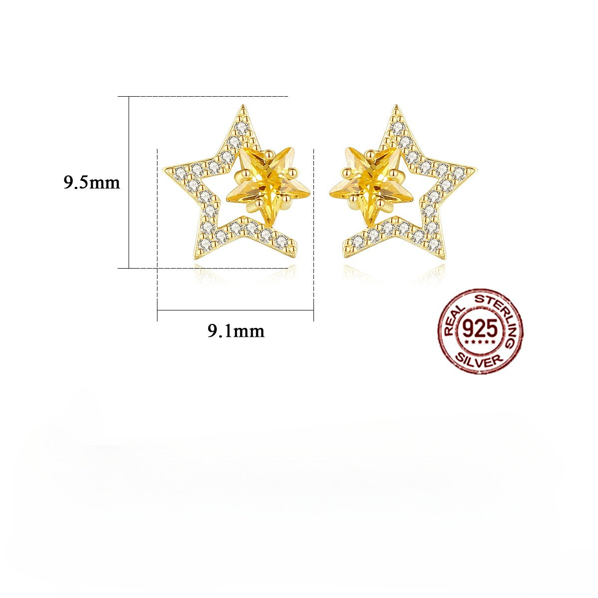 Pendientes Kemstone de plata de ley 925 con microincrustaciones de circonitas cúbicas y estrellas huecas para mujer: delicadas joyas geométricas con un sutil brillo SE20112308