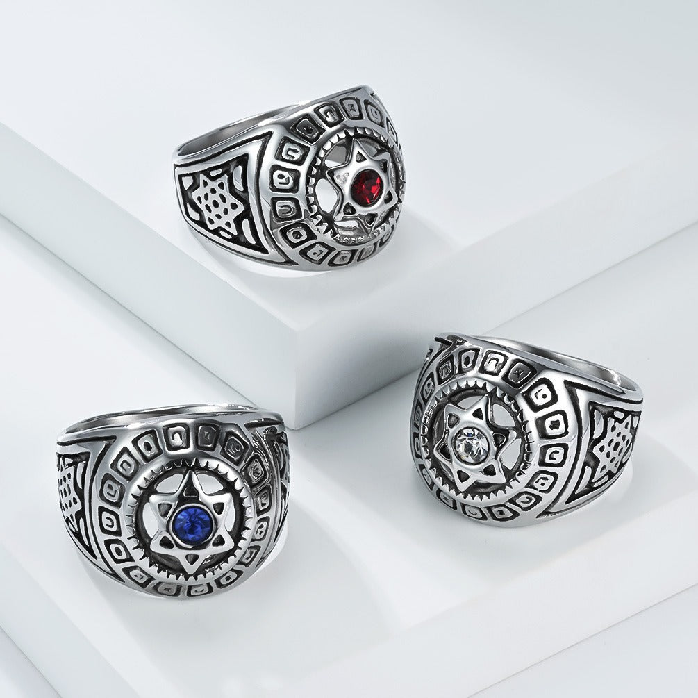 Show your bold spirit with Kemstone’s stainless steel hexagram ring — a six-pointed star design symbolizing harmony, protection, and inner strength.