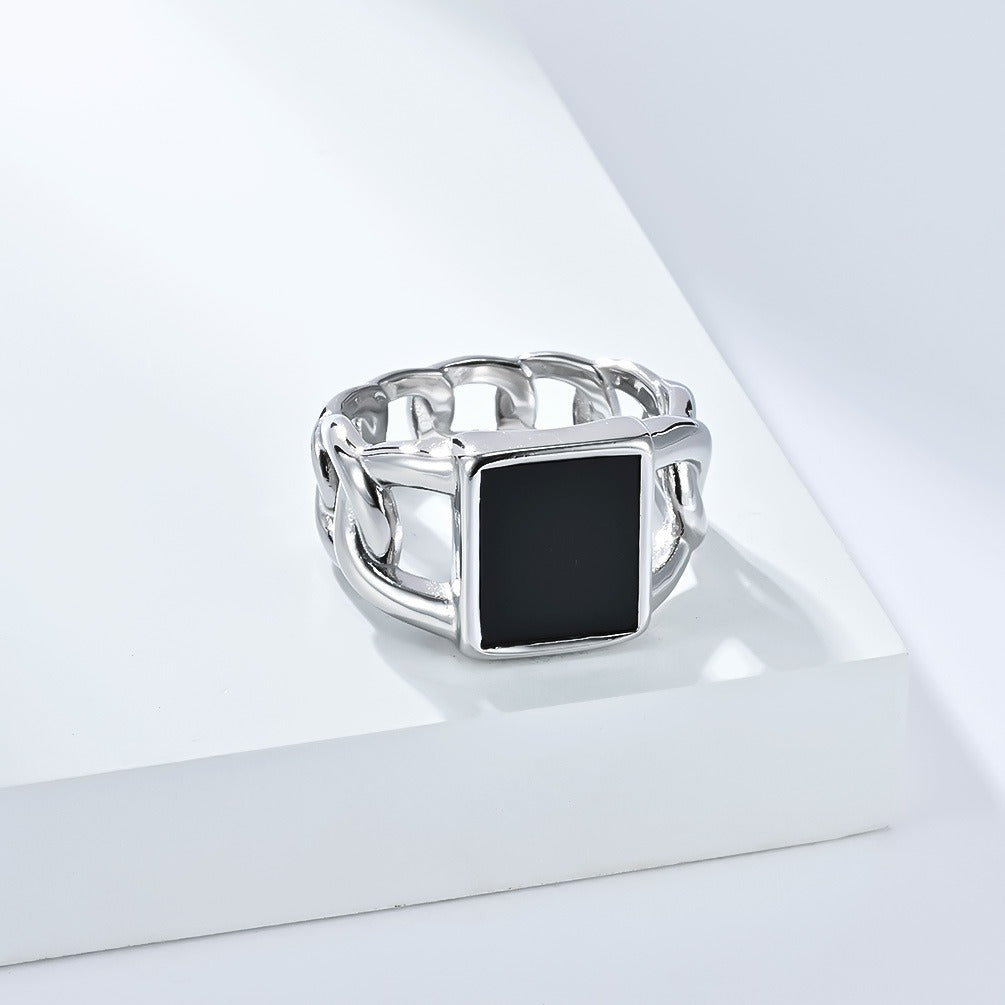 A chunky link band with a striking square gemstone centerpiece — built for men who own their street attitude.