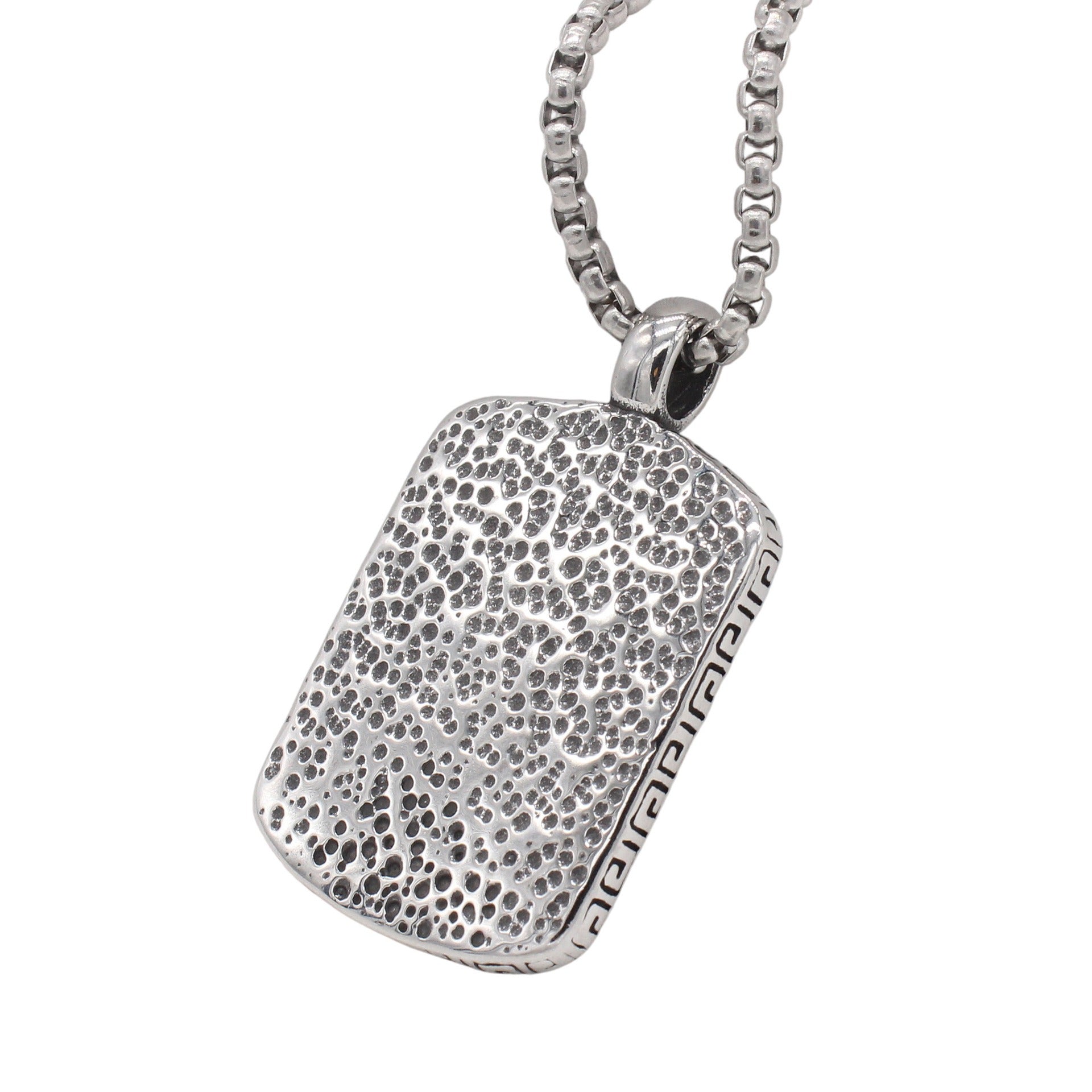 A solid feel with smooth edges for comfortable daily wear and natural presence on the chest.