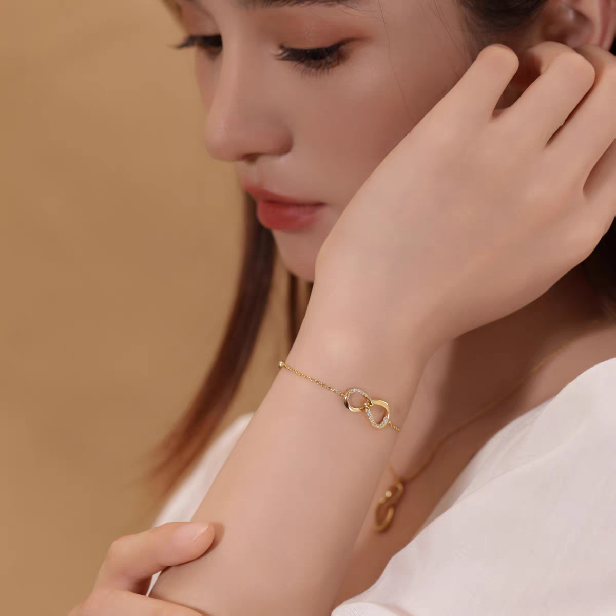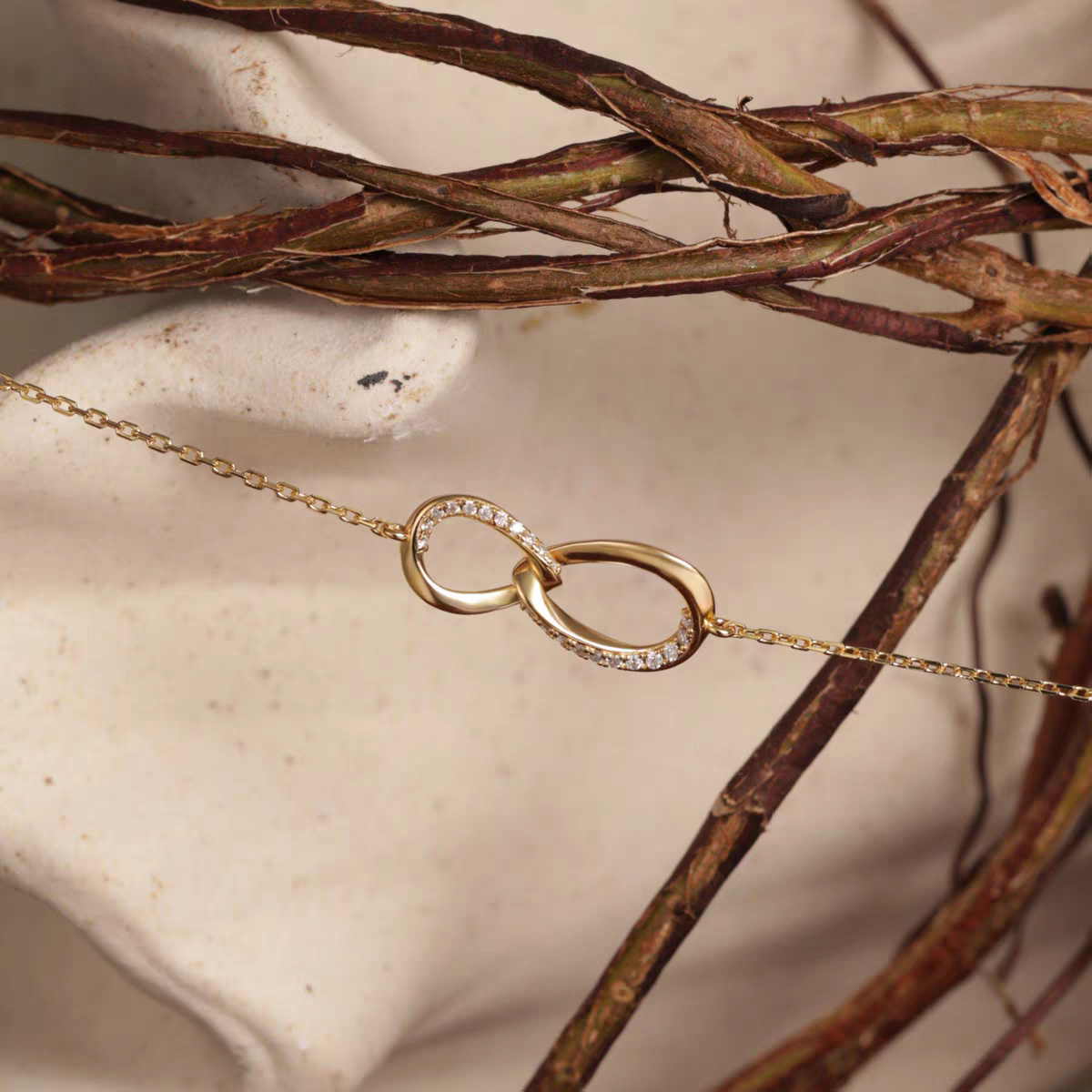 Kemstone Moissanite Infinity Bracelet – 18K Gold Plated 925 Silver for Women EM-HXB183