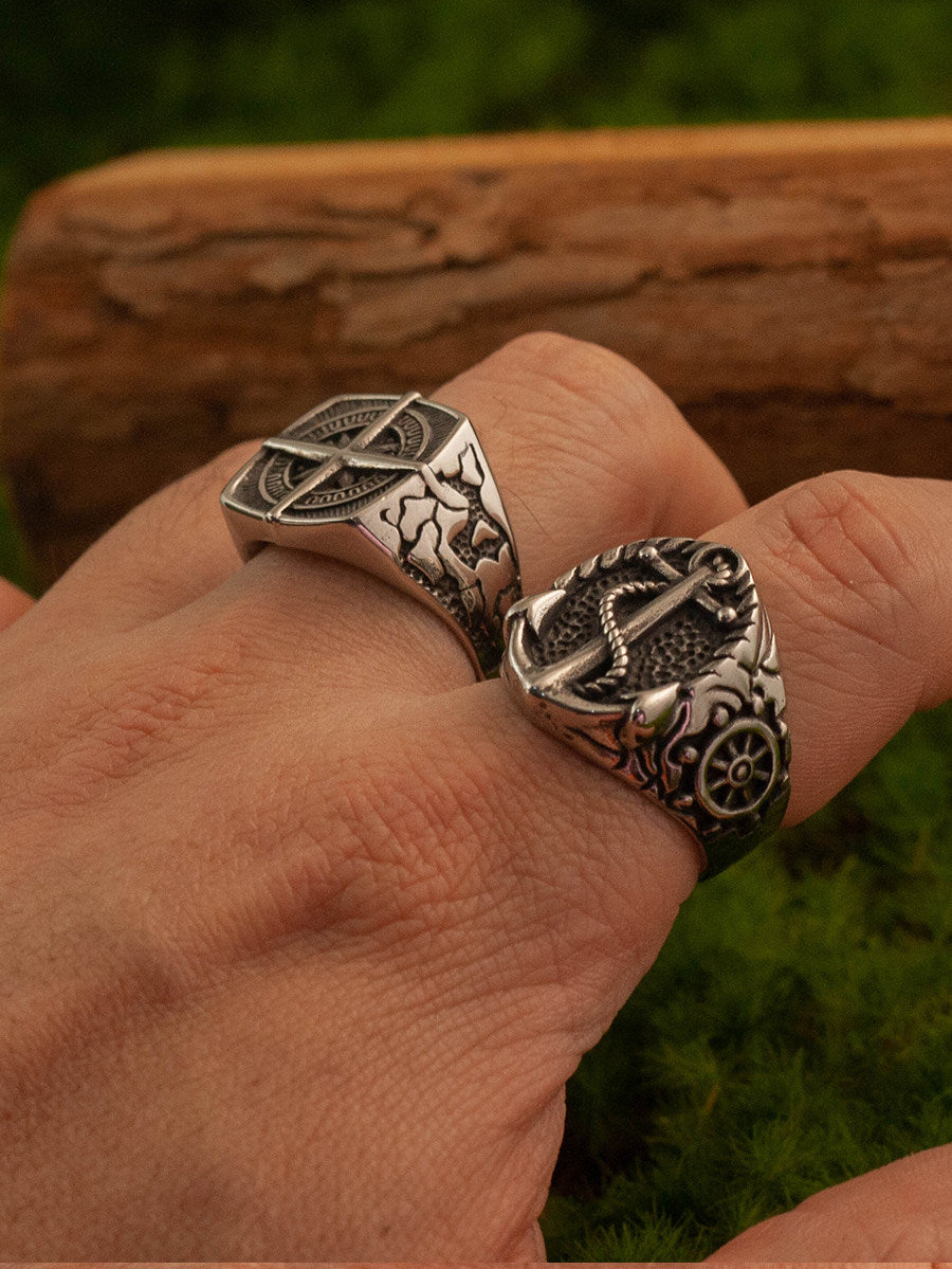 Kemstone Titanium Steel Nautical Compass Ring for Men – Vintage Maritime Design NW-JZ149
