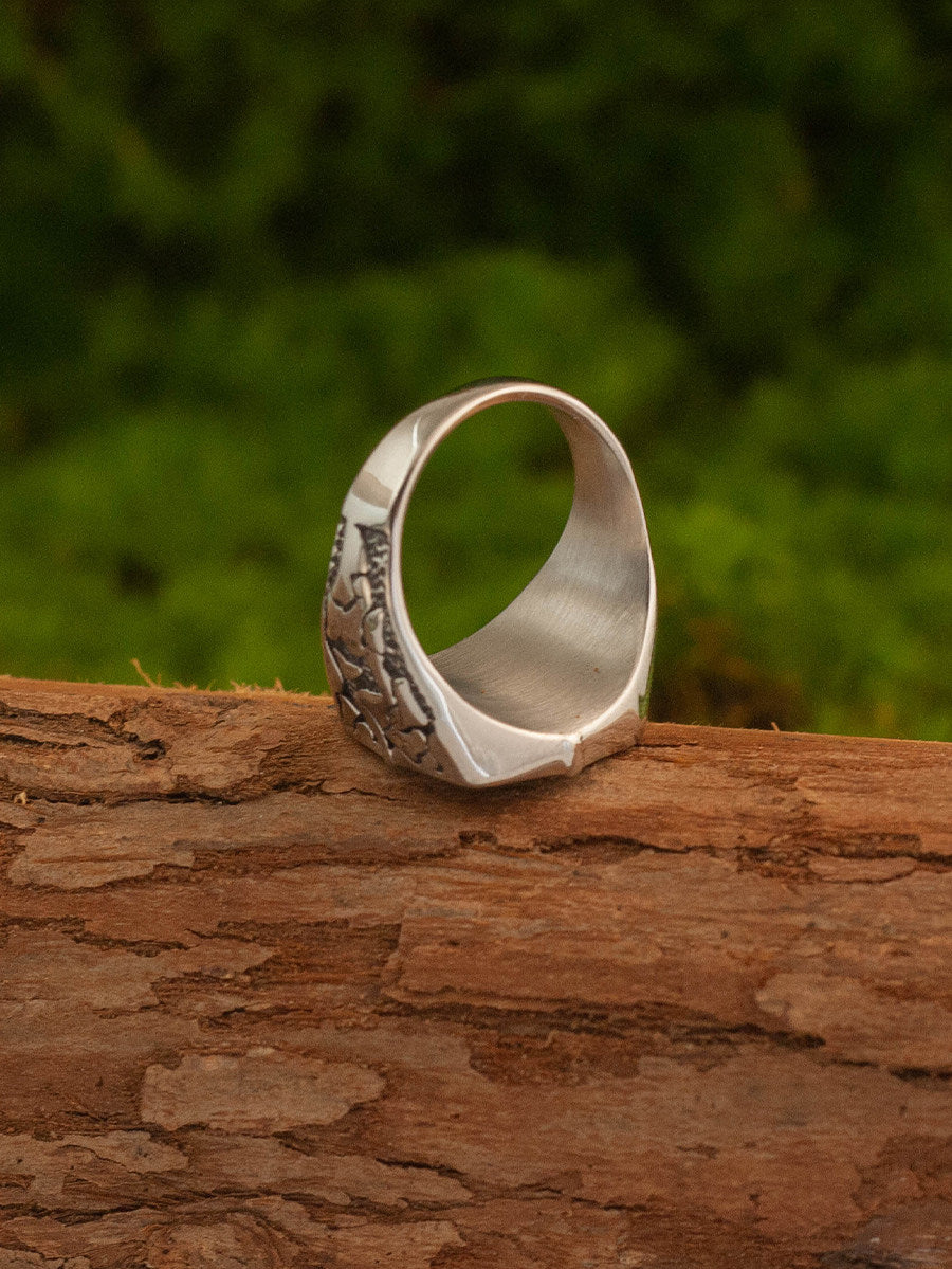 Width: 18.8mm, Weight: 11g. Available in sizes 7-13, designed for a bold yet comfortable fit.