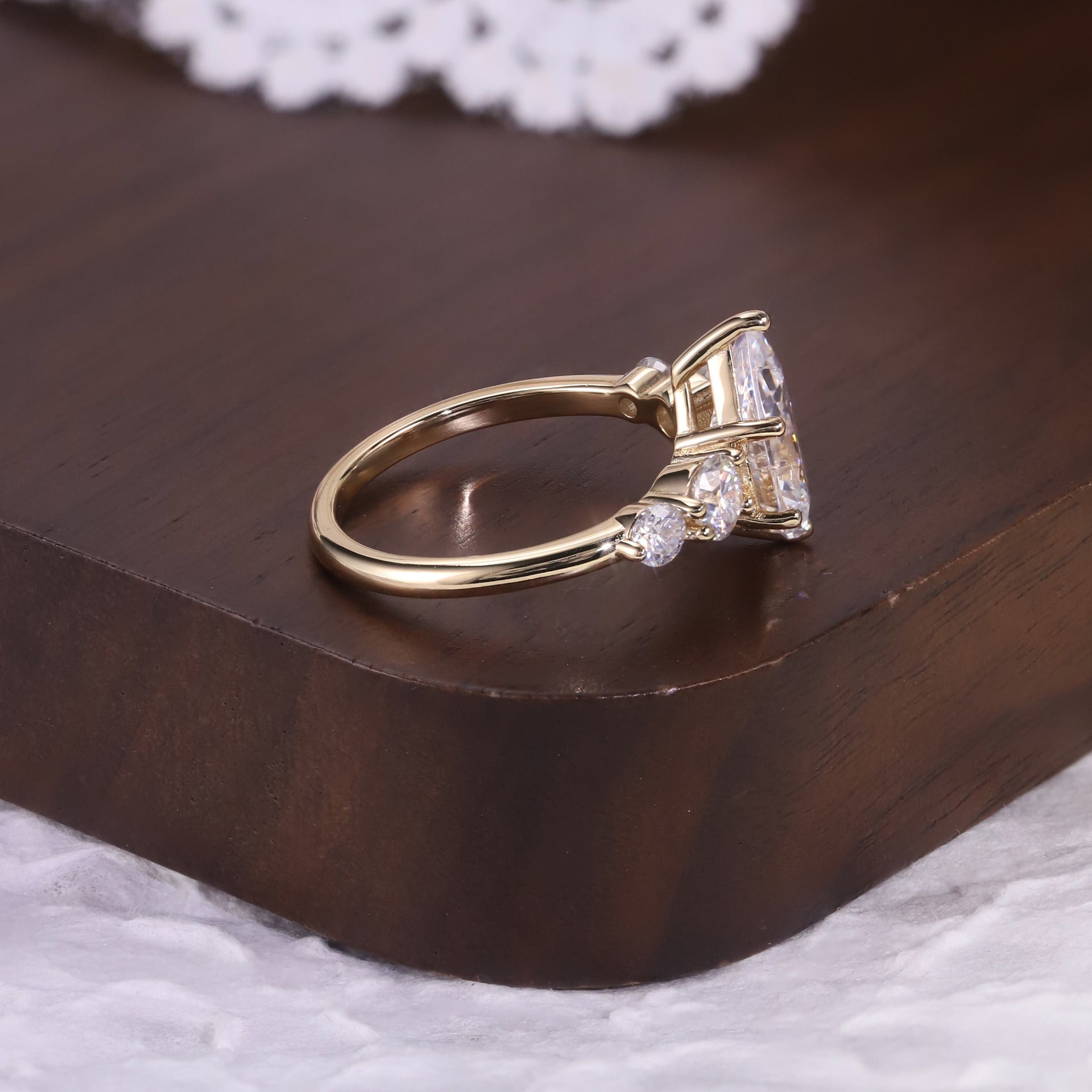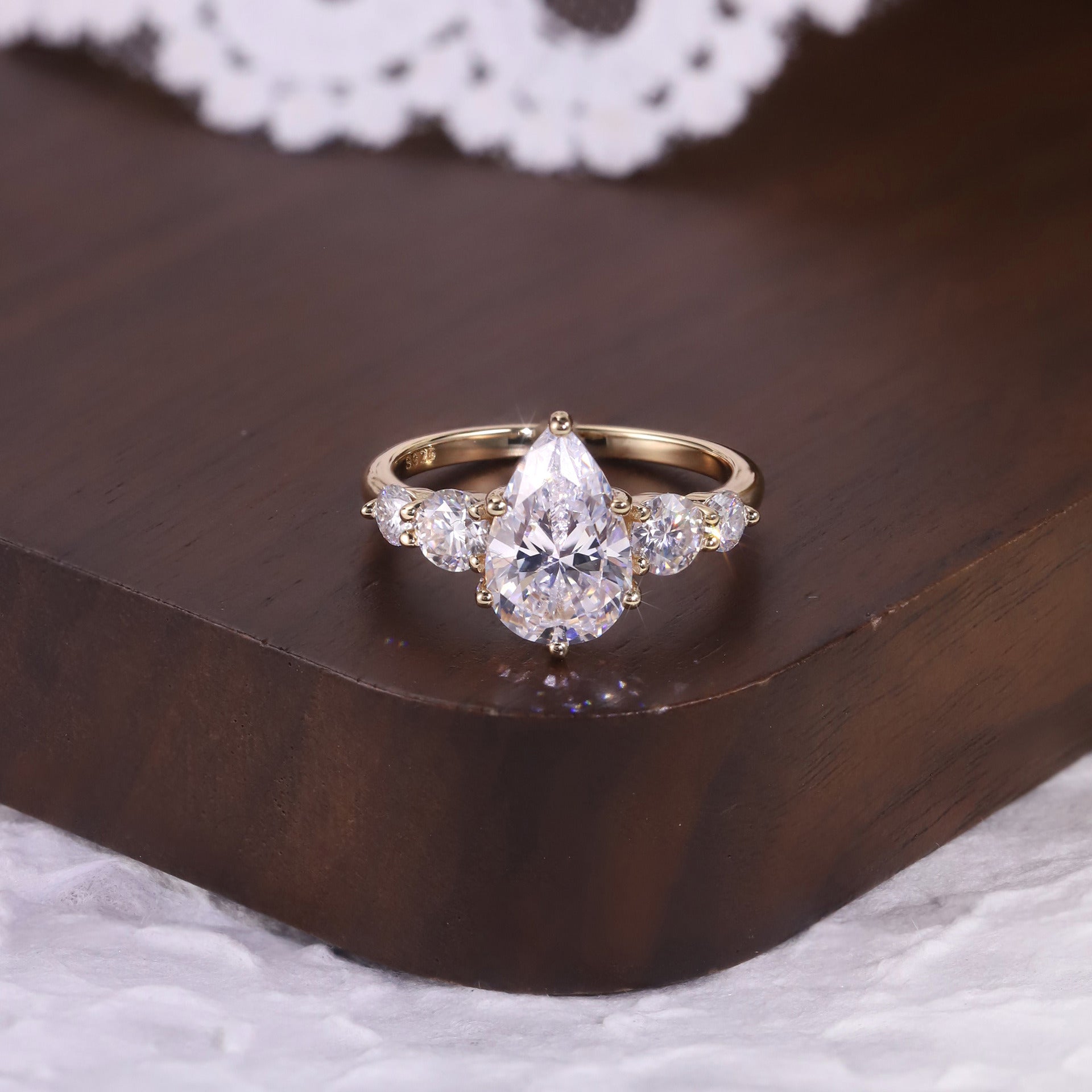 Elevate your bridal style with Kemstone’s 1–6ct Pear Cut Moissanite Five-Stone Ring—crafted in S925 gold-plated silver with D–E color and VVS clarity for maximum brilliance. A luxurious blend of elegance, craftsmanship, and modern romance.