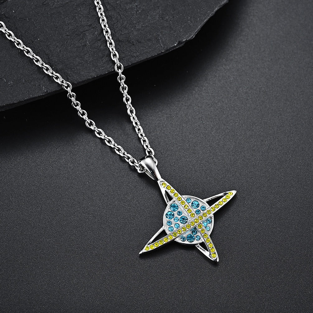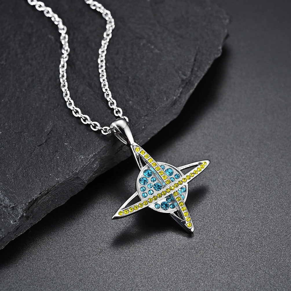 This stainless steel planet cross pendant brings balanced proportion and crystal detail to modern street styling.