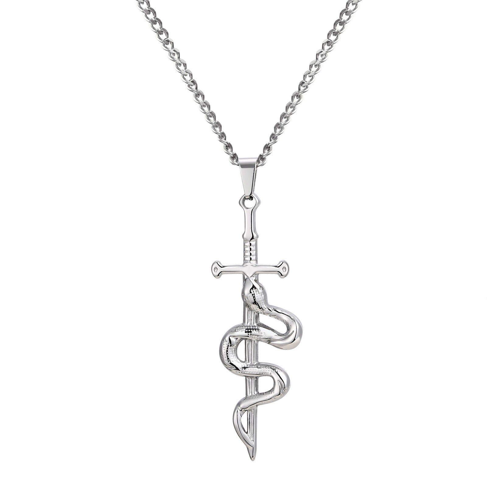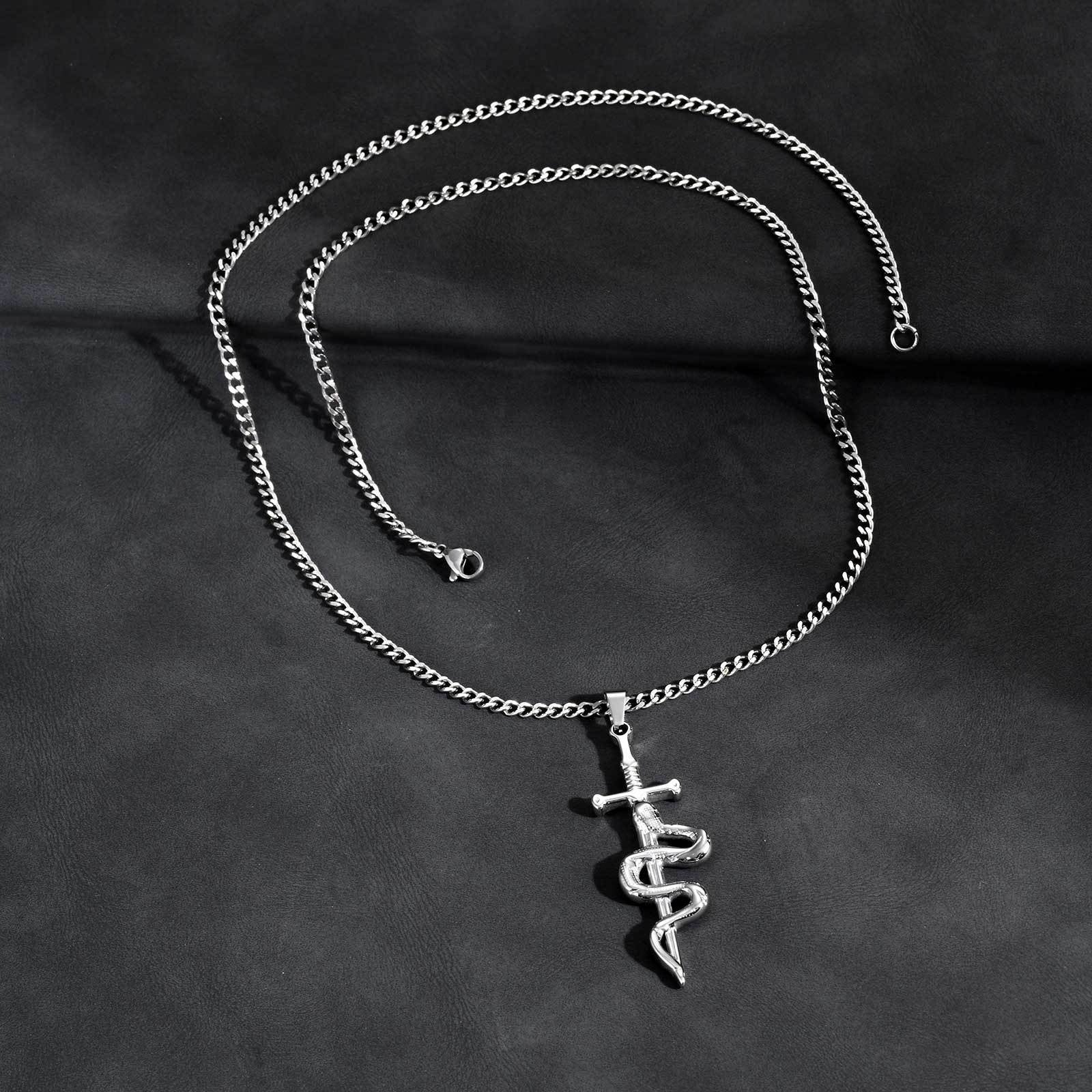Pendant size 5.22 × 1.8 cm gives this men’s snake cross necklace strong presence without excess weight.