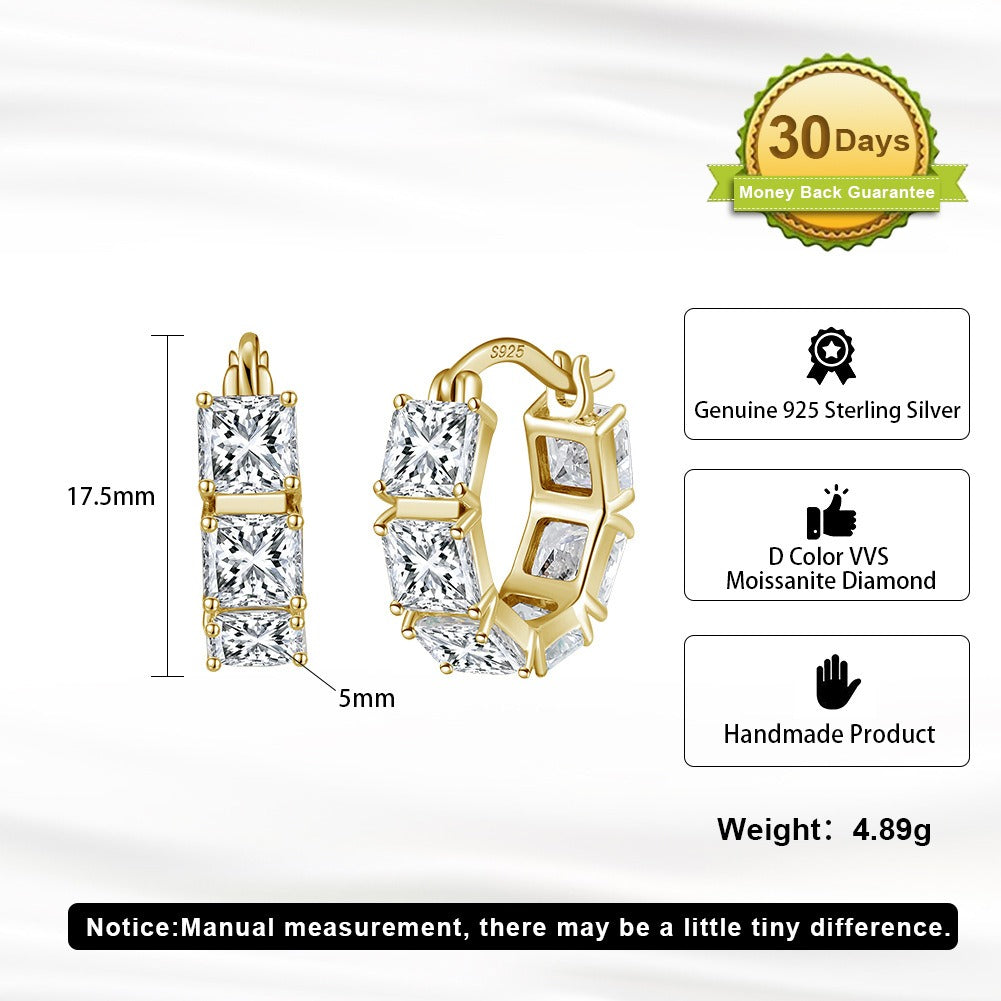 Kemstone Square Prong Set Moissanite Hoop Earrings – 925 Sterling Silver, 5mm, Gold / Silver MOE20
