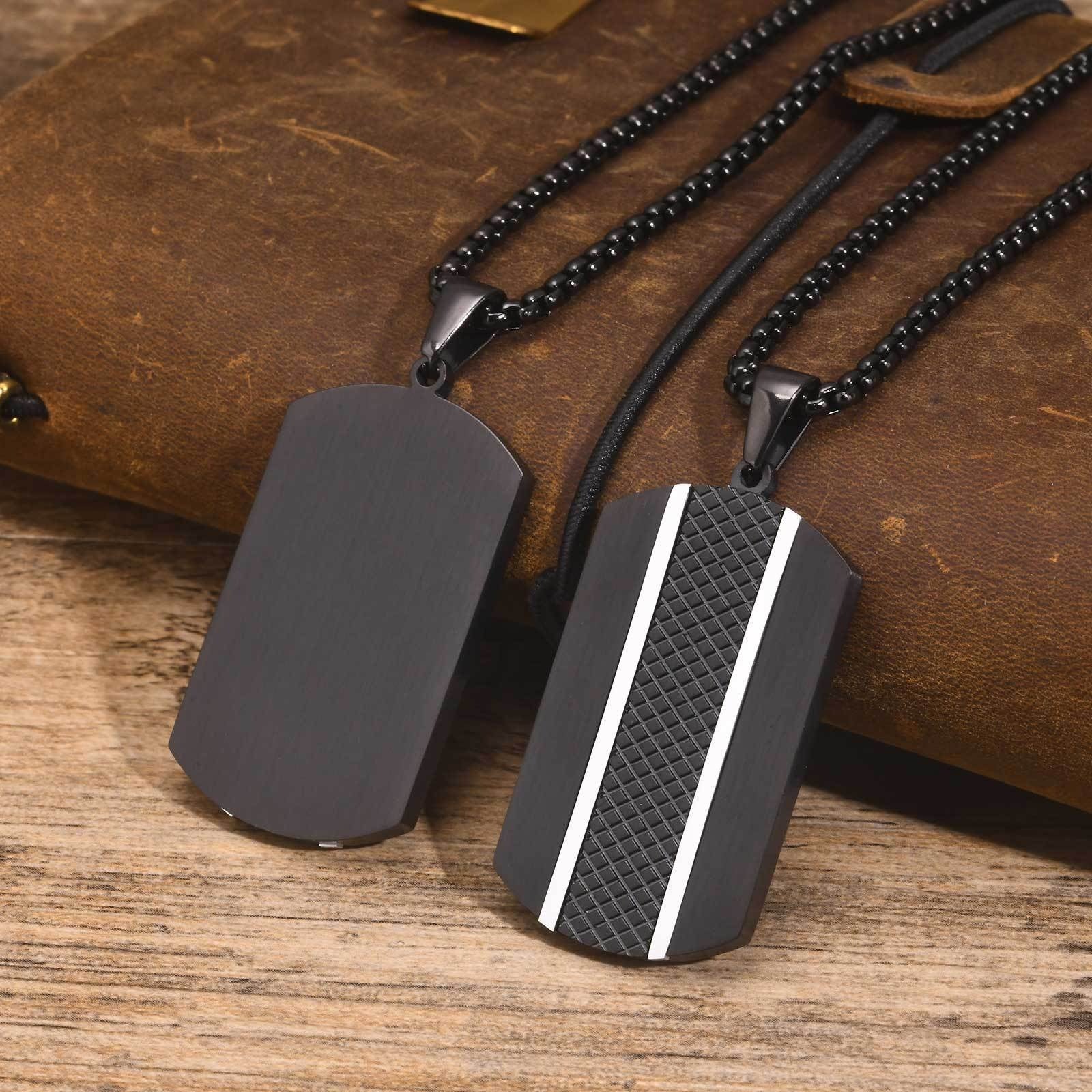 Upgrade your look with this stainless steel black pendant necklace for men. A matte finish and textured stripe bring modern edge, durability, and confident daily style.