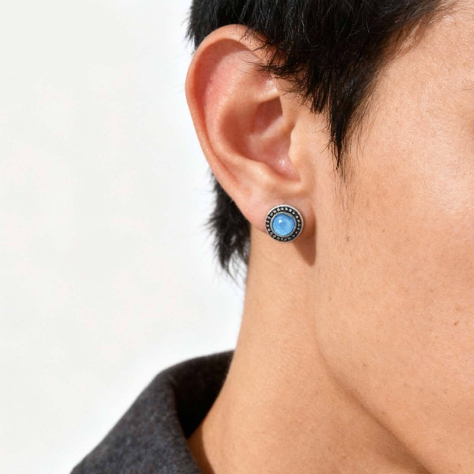 Embrace timeless style with Kemstone’s stainless steel blue resin stud earrings for men. Featuring a striking blue resin center surrounded by a sleek silver border, these earrings offer a bold, yet subtle, accent to any outfit.