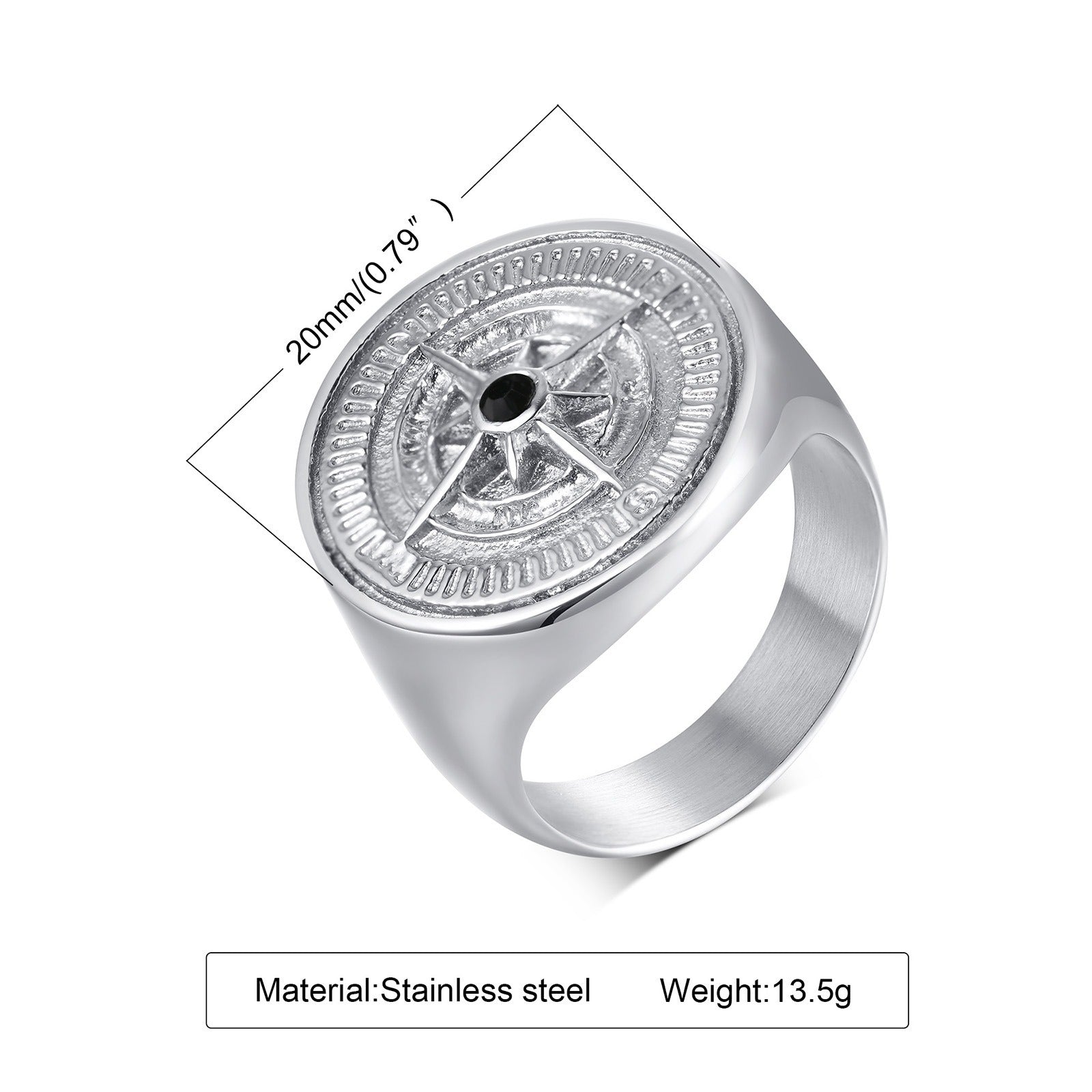 Kemstone Stainless Steel Compass Signet Ring for Men RC-527