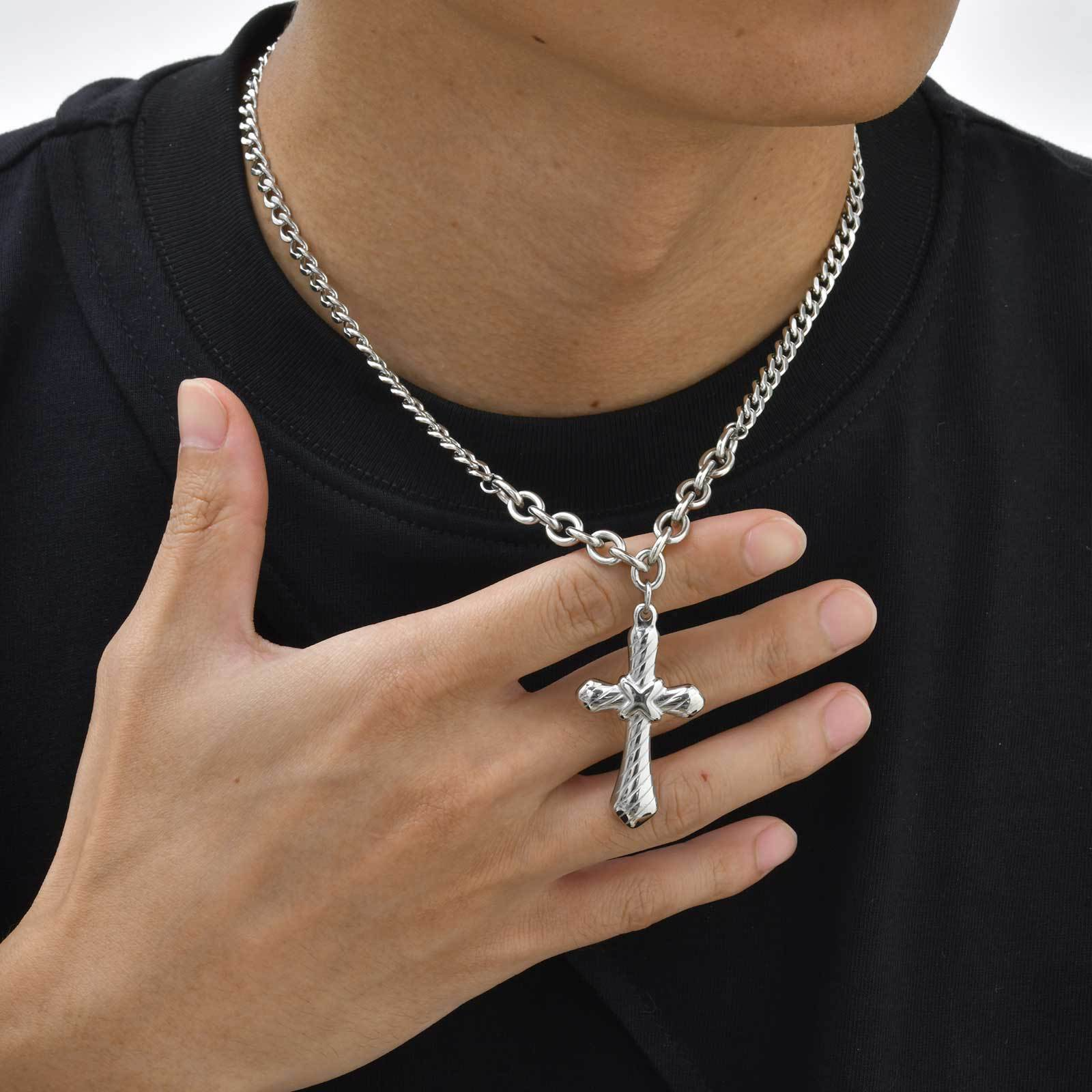 Wear strength into your everyday style with this stainless steel cross chain necklace for men. A clean, double-sided design that brings balance, presence, and modern confidence.
