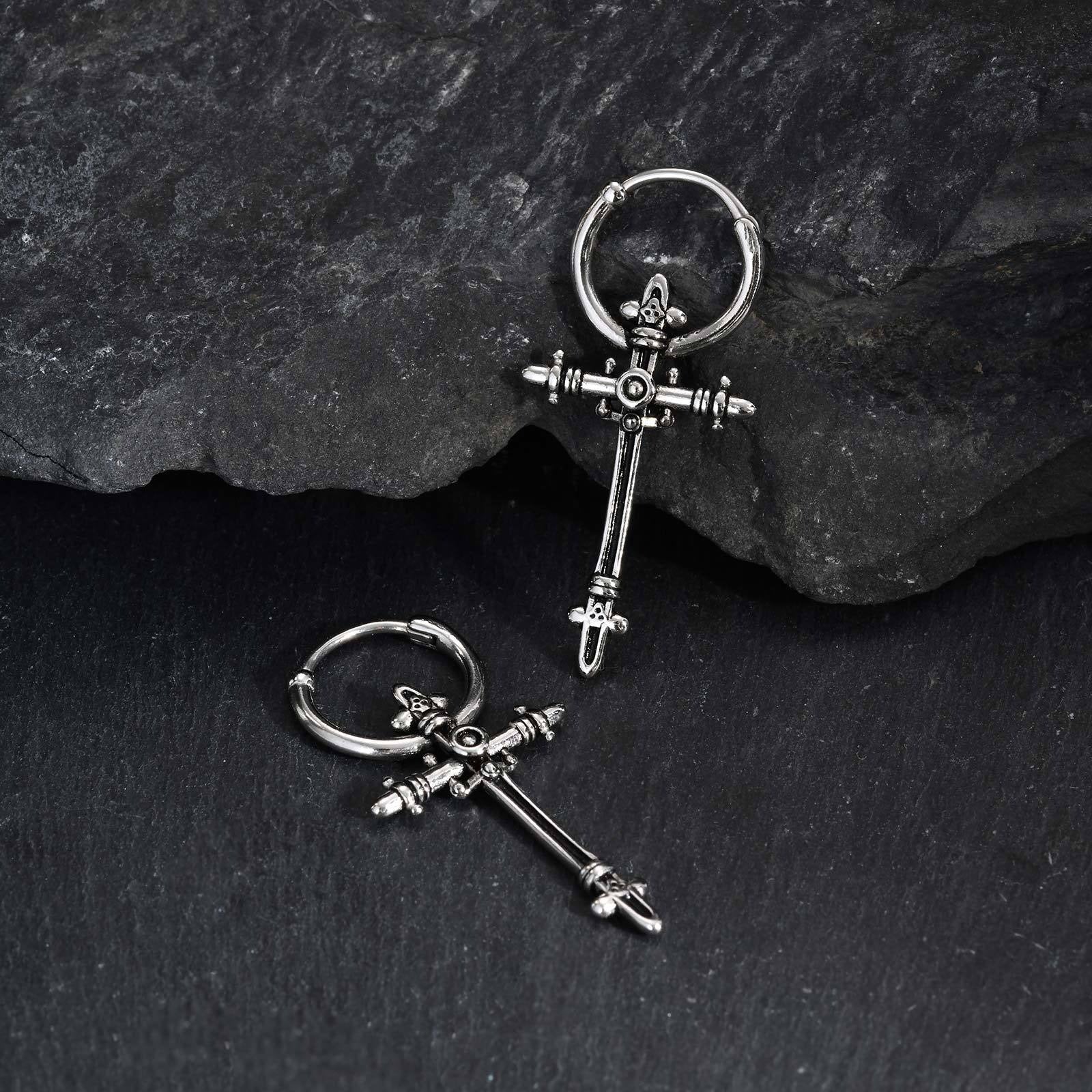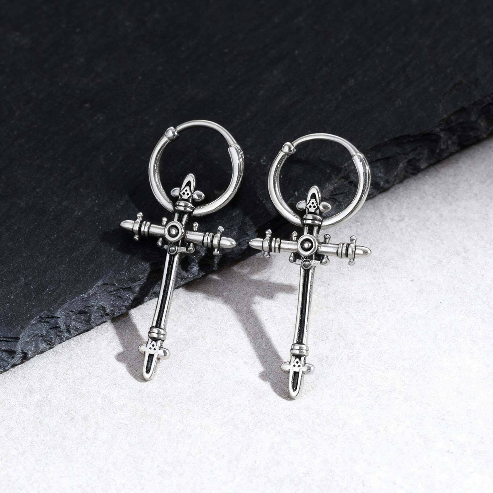Kemstone Stainless Steel Cross Hoop Earring for Men – Vintage Silver ED-966