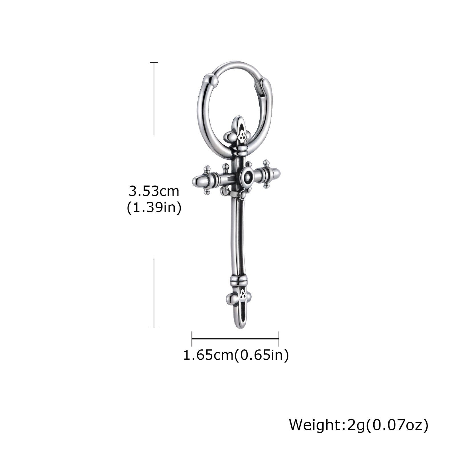 Style your look with this stainless steel cross hoop earring for men. A vintage silver finish and sculpted cross drop bring confidence, edge, and effortless daily presence.